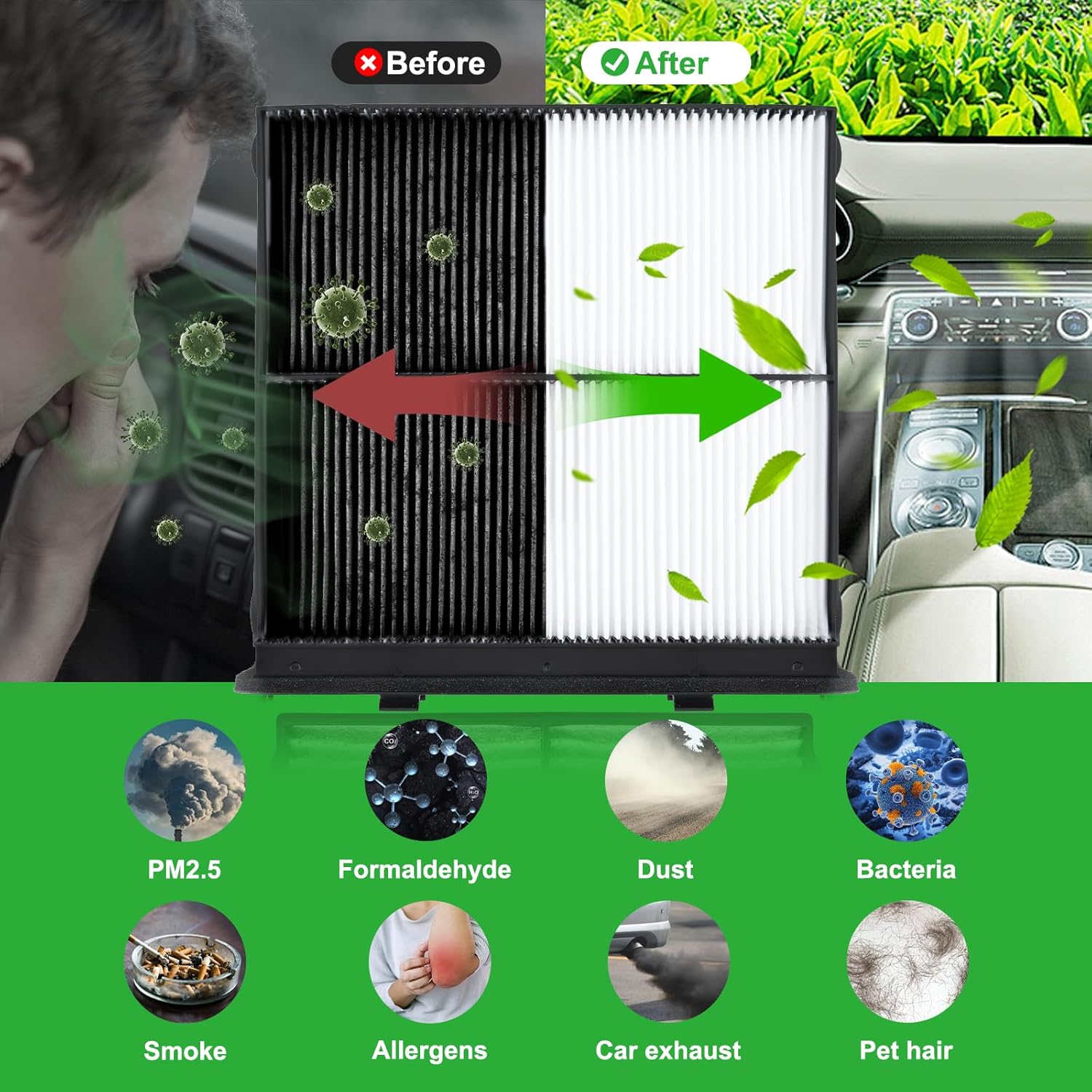 - Boa Circulação de Ar e Durabilidade: O design do filtro permite uma excelente permeabilidade ao ar, sem obstruir a circulação normal do sistema de ar condicionado. Resistente a altas temperaturas e ao desgaste, este filtro é durável e garante um desempenho prolongado. Recomenda-se a substituição anual ou a cada 12.000 milhas.