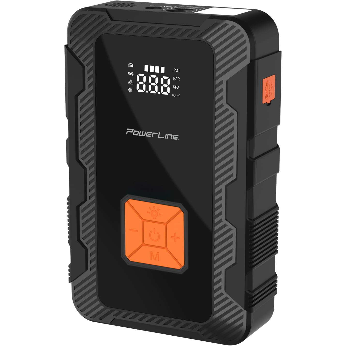 – Jump Starter 4 em 1: Combina jump starter, compressor de ar, banco de bateria e LED em um único dispositivo.