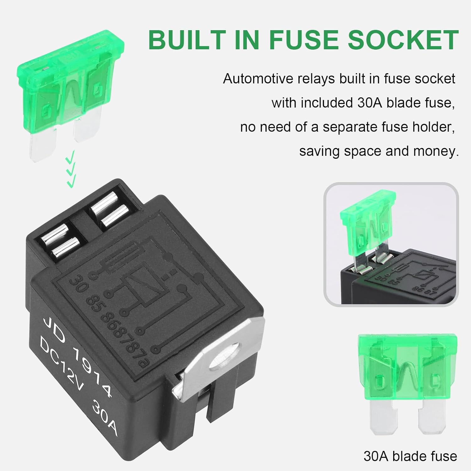 O Kit de Relé de Fusível 4 Pack, com relés de 12V e capacidade de 30A, é a solução ideal para quem busca eficiência e confiabilidade em sistemas elétricos automotivos. Este conjunto inclui quatro relés de estilo Bosch com 5 pinos SPDT (Single Pole Double Throw), projetados para suportar altas correntes e garantir um desempenho superior em aplicações automotivas. Com uma tensão nominal de 12VDC (14V Max), esses relés são perfeitos para uma variedade de projetos, desde a instalação de luzes auxiliares até sistemas de som automotivo.