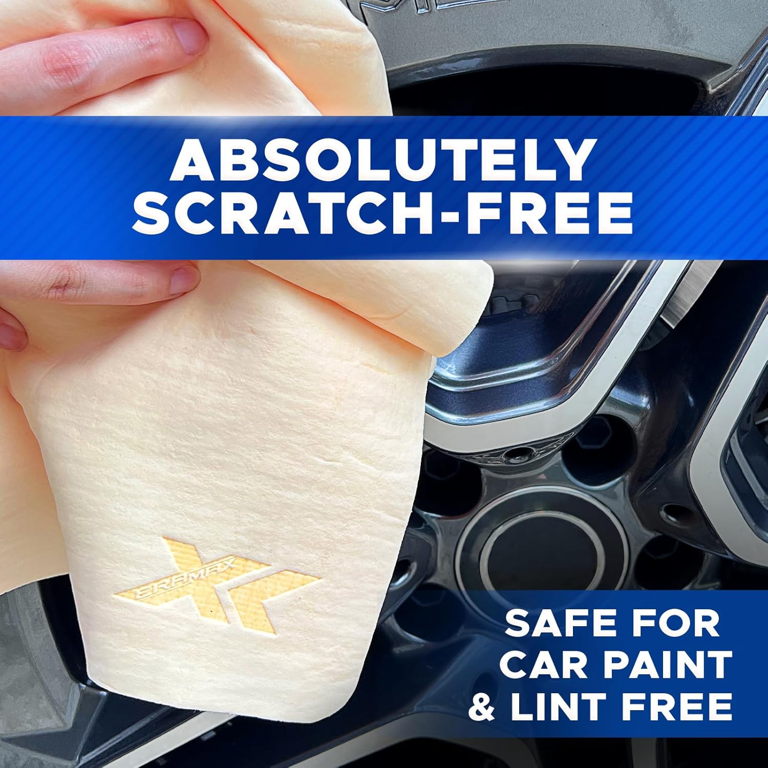 I have used sponge shammy’s for many years, and by far the ERAMAX towels are the best quality I found in the market. They are ultra thick and super absorbent. They are very soft. It’s surprising how much water they absorb. The 4pc combo is perfect for many uses. I keep one in my car another to dry off my boat. In the mornings my boat seats are especially wet. Using ERAMAX to wipe down and dry off boat seats in the morning starts my day off right. It is a great benefit. The small ones are good around the house, and perfect to use for camping. The smaller towels also have reusable zip bag for easy storage. The large ones have bottles for storage. That’s really helpful and handy.