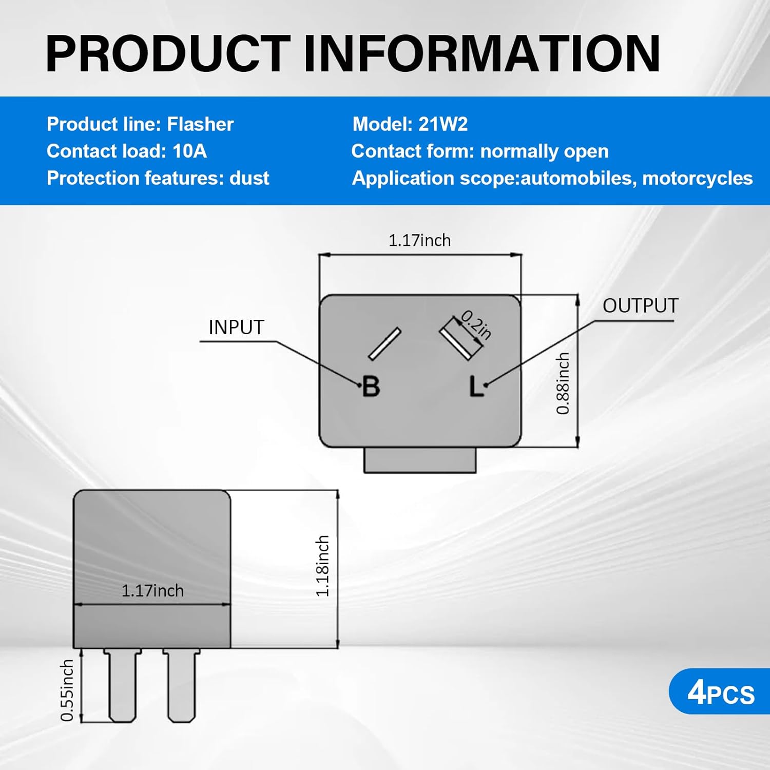 Relé de Sinalizador 2 Pinos 12V - 4 PCS, Ajustável, Isolado e Retardante de Chama, Compatível com Carros, 1.33″ x 0.94″ x 1.37″