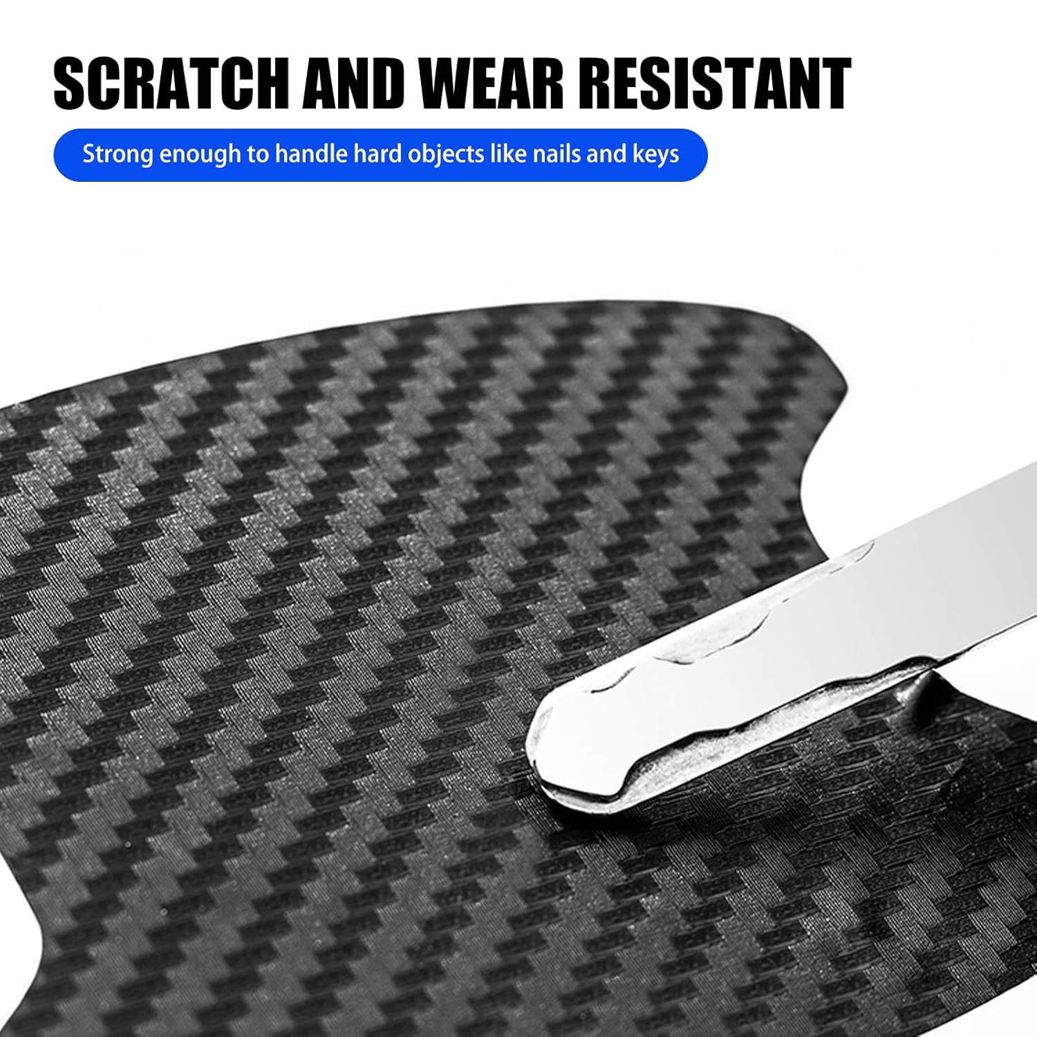 Os protetores de maçaneta de porta são projetados para proteger as maçanetas de arranhões causados por diversos fatores, como unhas, chaves e outros objetos. Com um adesivo forte, eles se mantêm no lugar por longos períodos e podem ser removidos sem deixar resíduos, garantindo que a superfície do seu carro permaneça impecável. A aplicação é simples e rápida: basta limpar a maçaneta, secar, remover a película protetora e colar o adesivo na posição desejada. Além de proteger, a textura da fibra de carbono adiciona um toque de sofisticação ao seu veículo.