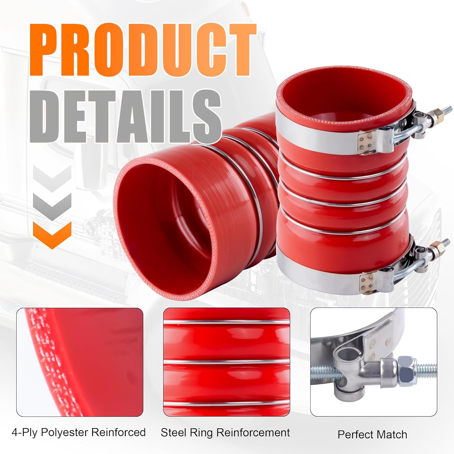 Apresentamos o Hose Kit de Silicone 4″ X 6″ com Clamps T-Bolt, uma solução de alta performance para sistemas de ar de veículos pesados, especialmente projetada para caminhões semi-reboque. Este kit inclui mangueiras de silicone de 4 polegadas de diâmetro interno, que são um substituto direto para peças OEM como DynaFlex: 202-36-2042, Purosil: 367-400-060, Gav: 7715-0002 e Flexfab: FLX7715-0002. Compatível com a maioria dos modelos comuns da Peterbilt, Freightliner e Kenworth, este produto é ideal para quem busca eficiência e durabilidade em aplicações de ar de admissão e intercooler.