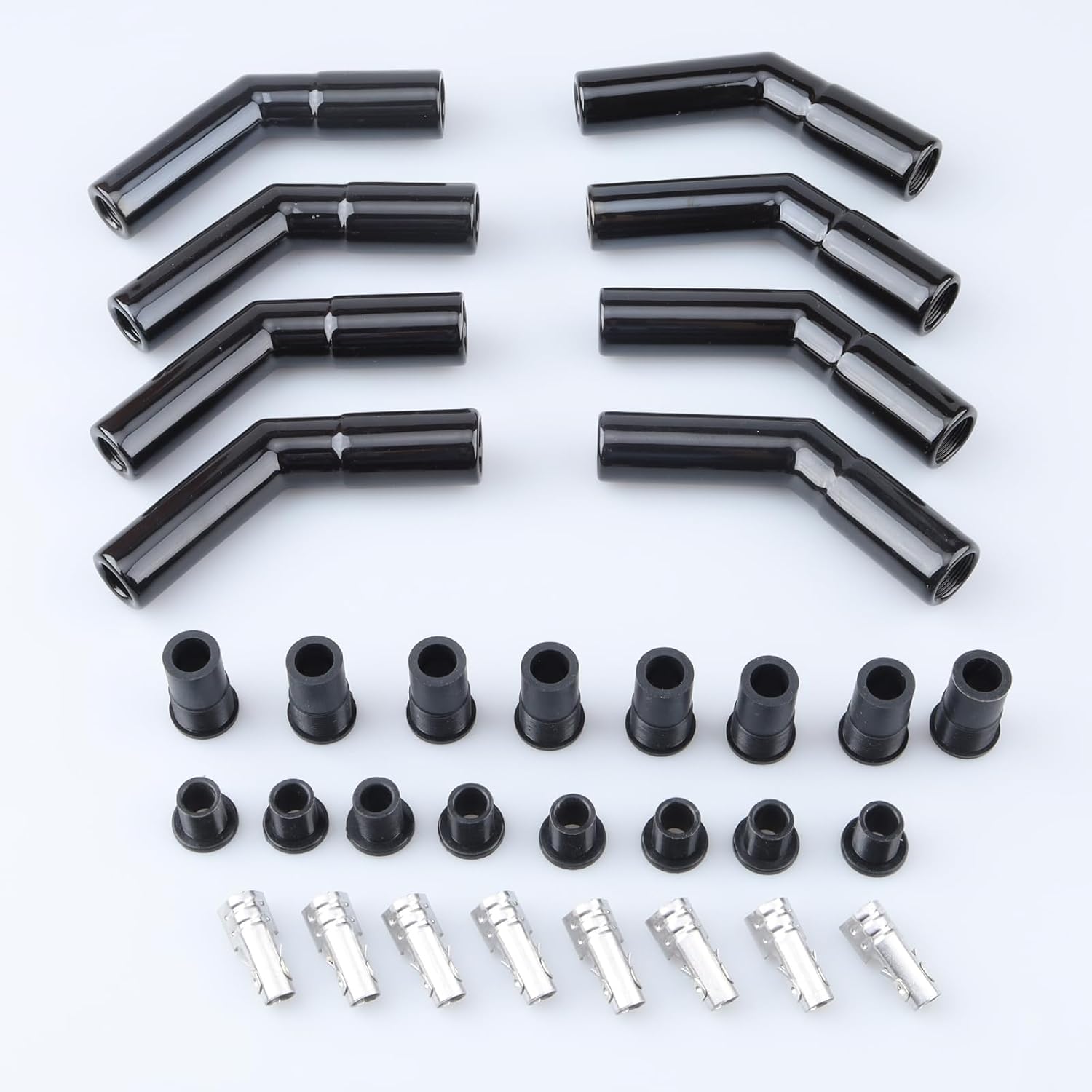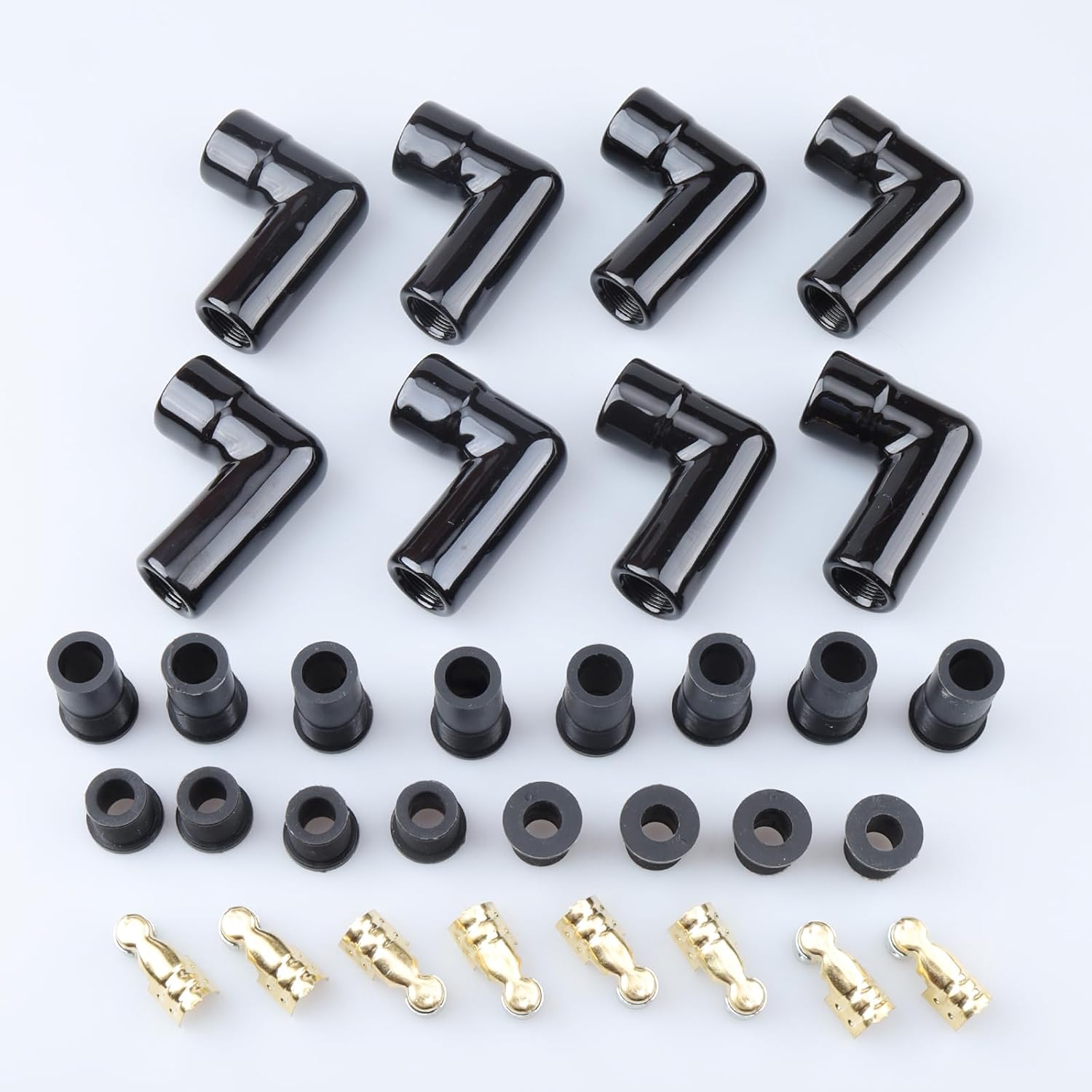 – Componentes Inclusos: Cada pacote contém 8 botas, bushings de silicone e de cabo, além de terminais de vela em aço inoxidável.