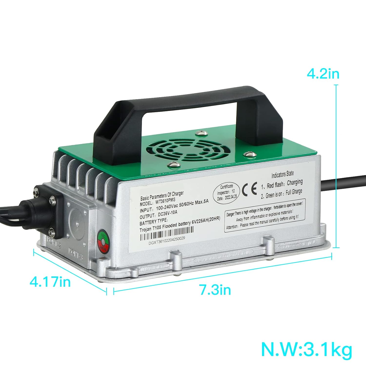 A facilidade de uso é uma das principais características deste carregador. Ele inicia automaticamente quando a energia é ligada e desliga quando a bateria está totalmente carregada. Para garantir a segurança, o carregador fornece um sinal de intertravamento de carga, impedindo que o carrinho se mova até que o plugue de carregamento seja desconectado. Essas funcionalidades tornam o carregador não apenas prático, mas também seguro, assegurando que seu carrinho de golfe permaneça em condições ideais.
