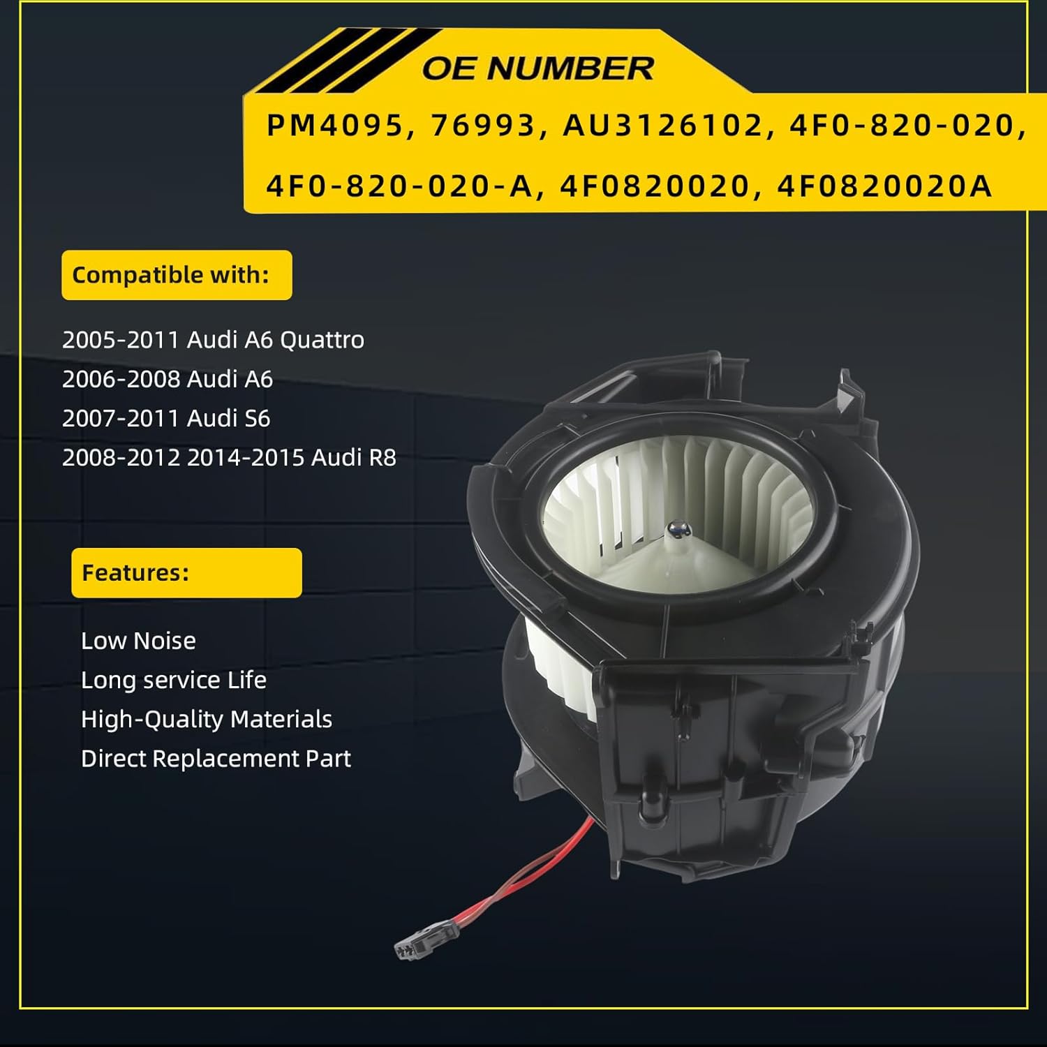 Motor de Ventilador de Ar Condicionado 4F0820020A Compatível com Audi A6 e R8 2005-2015 – Substitui PM4095 4F0-820-020-A