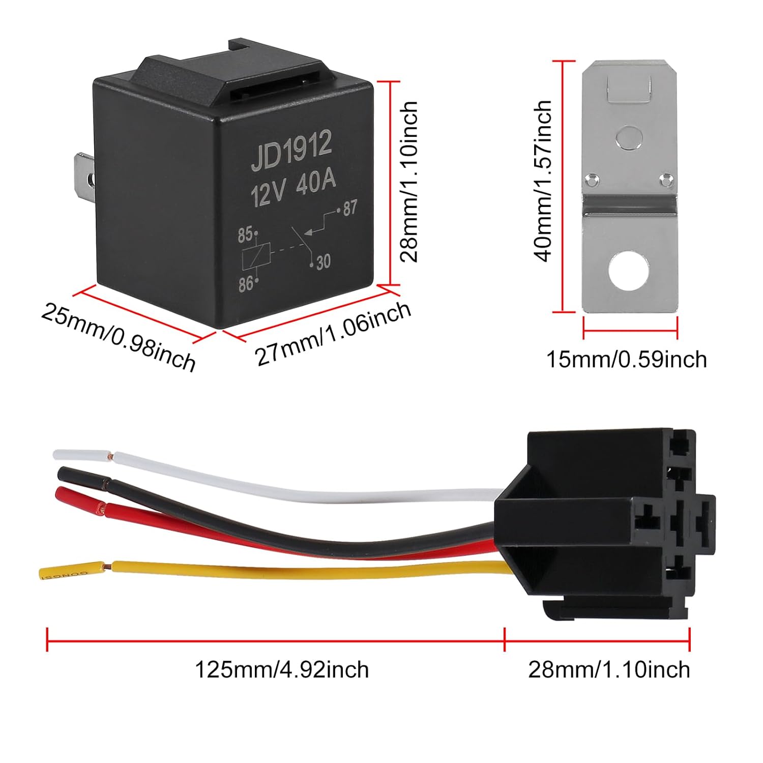 O 4Pack JD1912 Car Relay Harness é a solução ideal para quem busca confiabilidade e eficiência em sistemas elétricos automotivos. Com um design robusto de conector de 40 Amp e 4 terminais, este relé é capaz de suportar cargas de até 40A em 12VDC, tornando-o perfeito para uma ampla gama de aplicações em veículos, incluindo carros, motocicletas, caminhões, vans e até barcos.