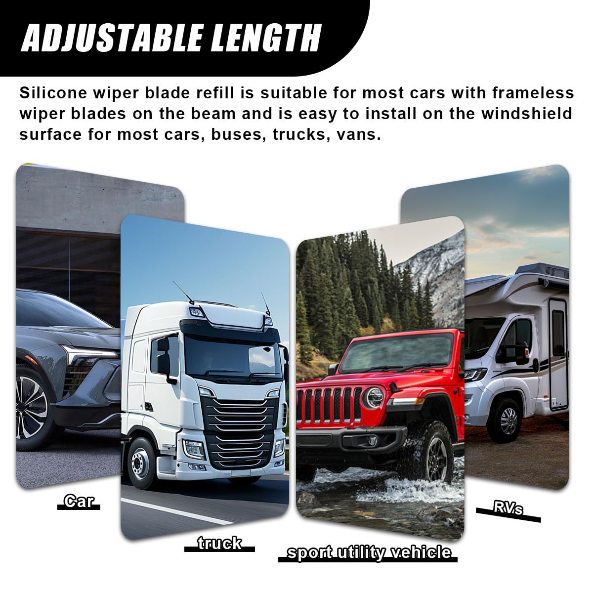 – Ajustável DIY: Cada lâmina possui 25,66 polegadas de comprimento e 0,35 polegadas de largura, permitindo que você as corte facilmente para o tamanho exato necessário para o braço do limpador do seu veículo. Essa funcionalidade de ajuste DIY atende às necessidades personalizadas de diferentes proprietários de carros, tornando a instalação mais prática e eficiente.