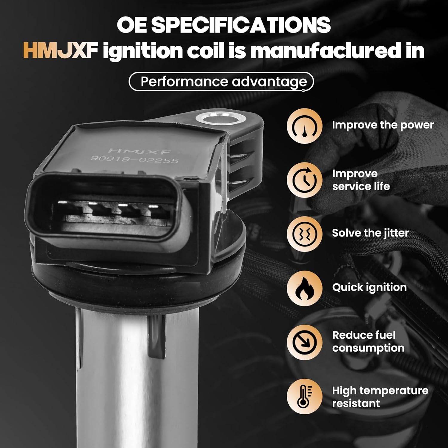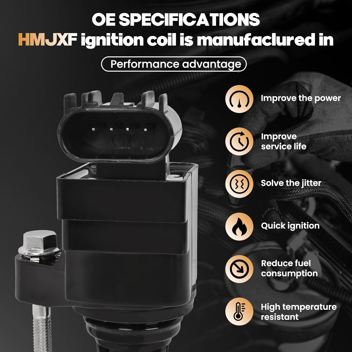 [RESOLVE PROBLEMAS COMUNS DO SISTEMA DE IGNIÇÃO]: As bobinas de ignição HMJXF são eficazes na resolução de problemas comuns, como retrocesso, falhas de ignição, engasgos, tremores do motor e marcha lenta irregular. Elas também aumentam a potência do motor para um desempenho máximo. Além disso, essas bobinas monitoram a luz de verificação do motor para falhas de circuito e engasgos severos.