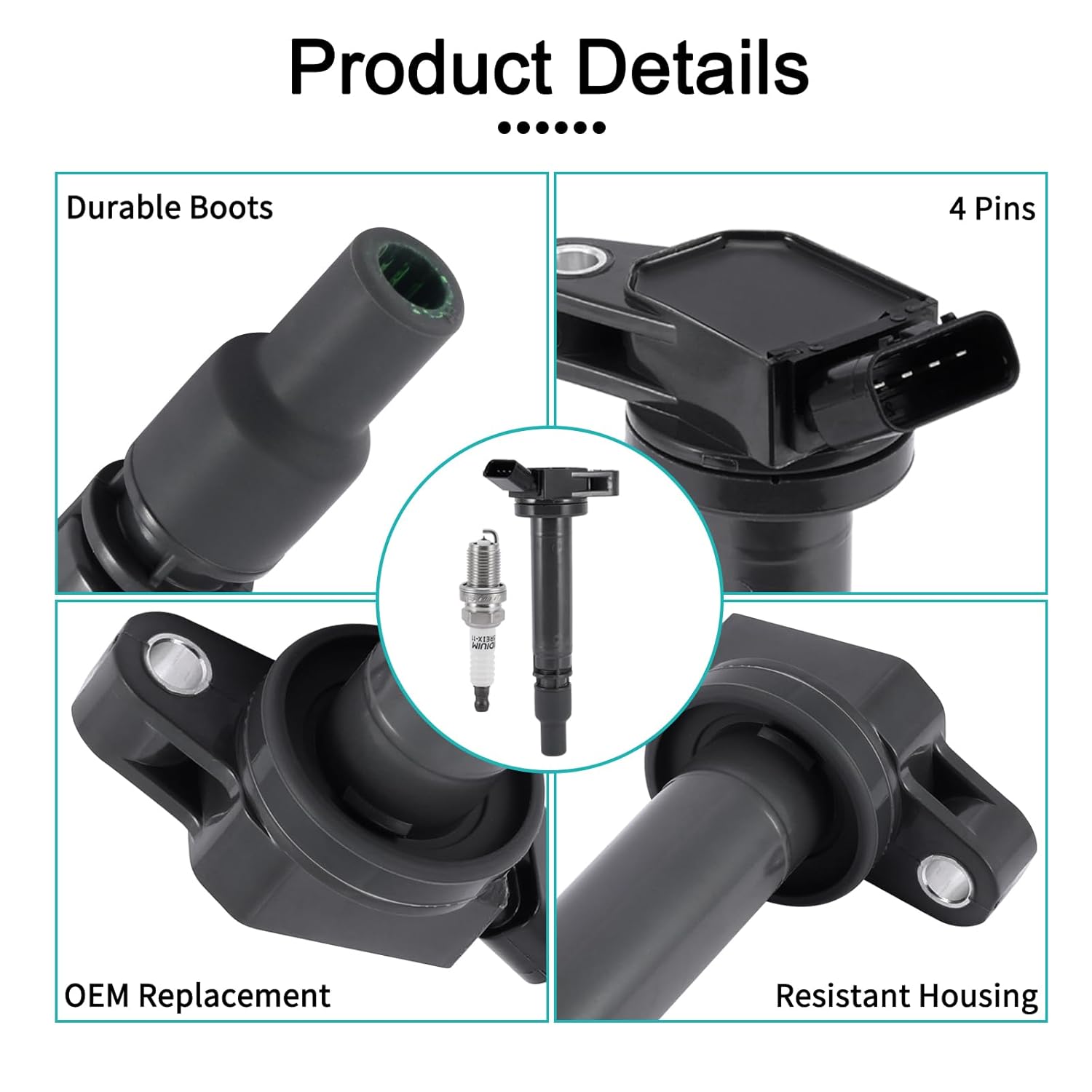 O Pacote de Bobinas de Ignição 4PCS UF507 é a solução ideal para quem busca desempenho e confiabilidade em veículos Toyota, Lexus e Scion. Com um número de peça OEM que inclui UF-507, UF621, UF-587, entre outros, este produto é compatível com uma ampla gama de modelos, como o Toyota Avalon 2.5L L4 (2010-2017), Camry 2.5L L4 (2009-2015), RAV4 2.5L L4 (2009-2015), e muitos outros. A qualidade premium das bobinas de ignição é garantida por tecnologia avançada que proporciona resistência a altas temperaturas e impactos, além de um desempenho superior em comparação com as bobinas convencionais.