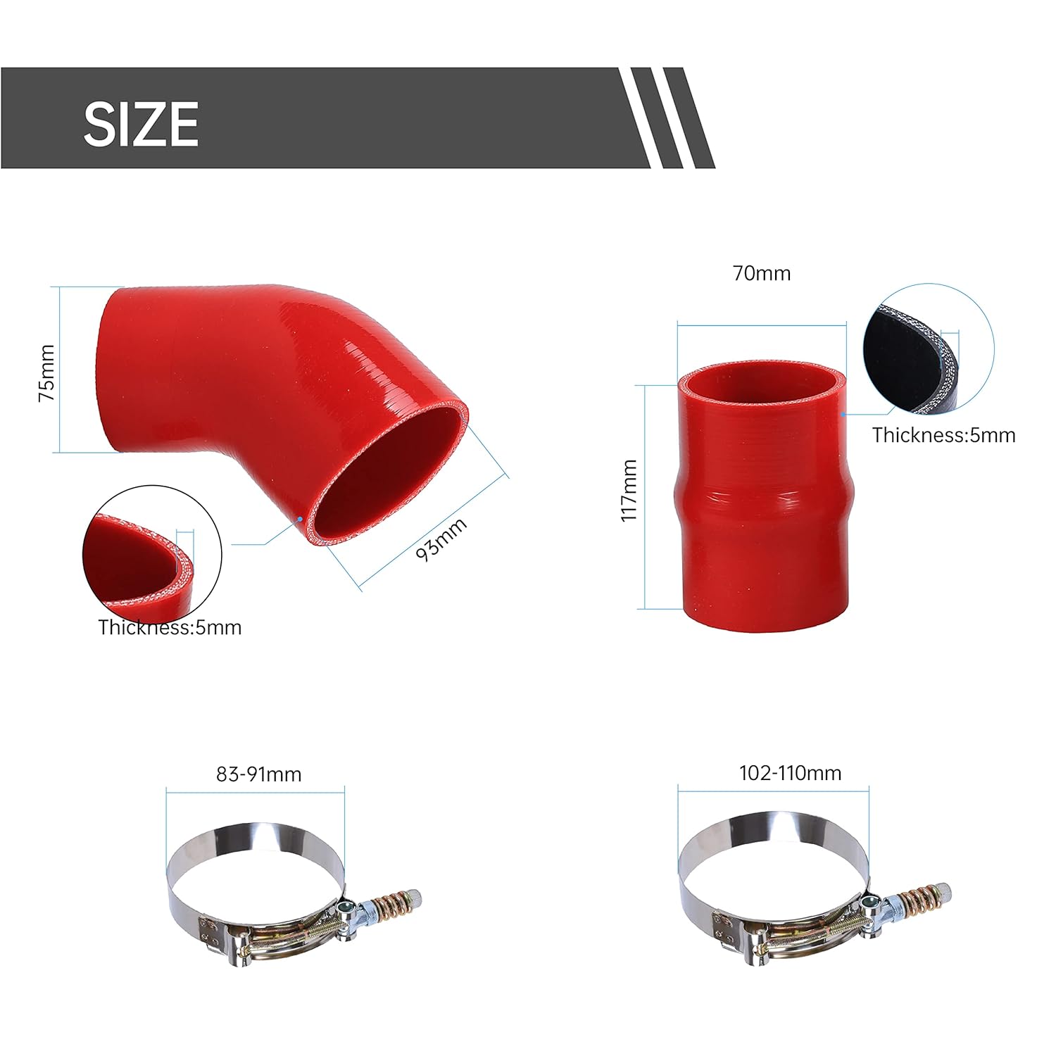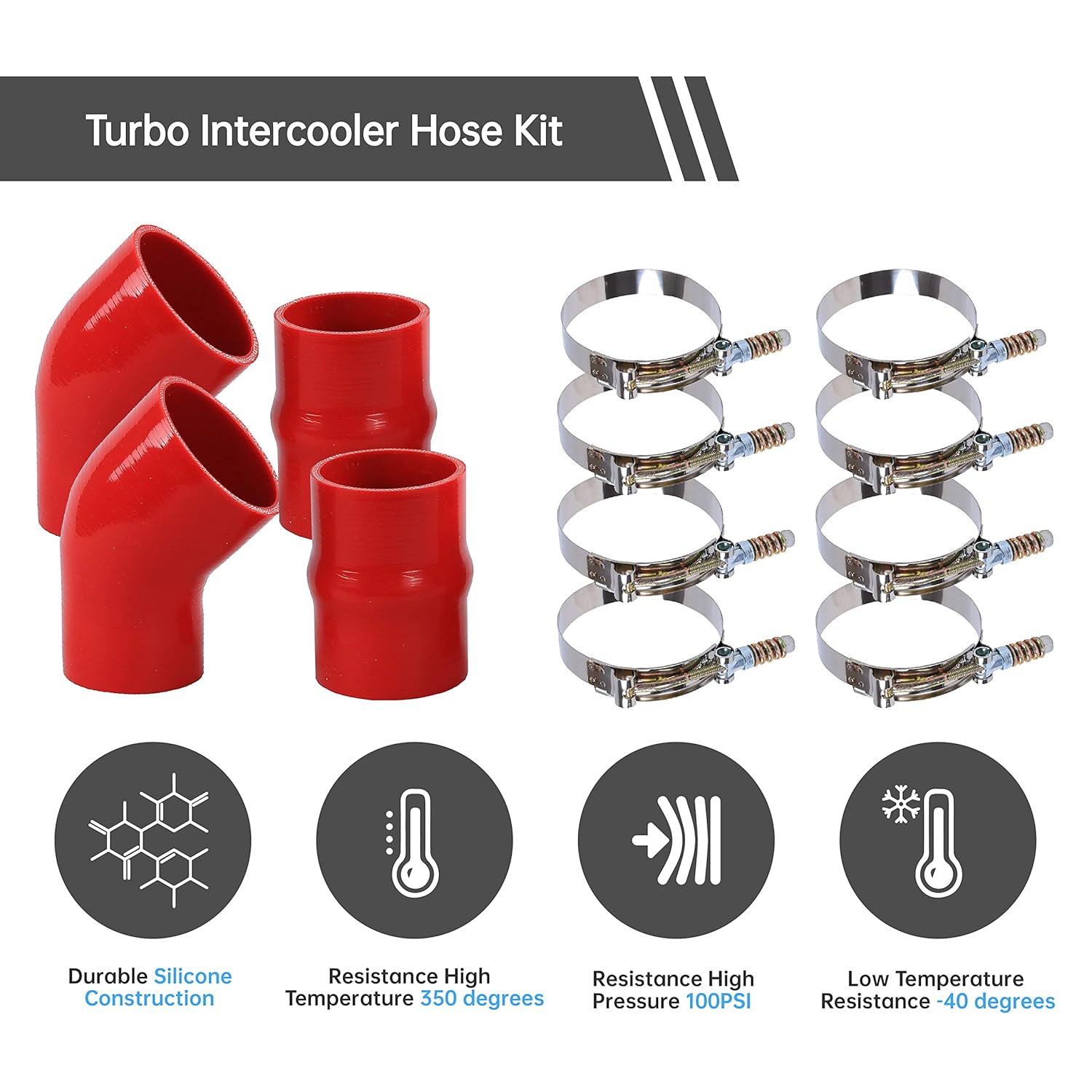 O Kit de Intercooler inclui 4 mangueiras de silicone de alta resistência e 8 braçadeiras T-Bolt de tensão constante, que garantem uma instalação fácil e segura. Disponíveis na cor vermelha, essas mangueiras não apenas melhoram a estética do seu motor, mas também oferecem um desempenho superior em comparação com as mangueiras convencionais.