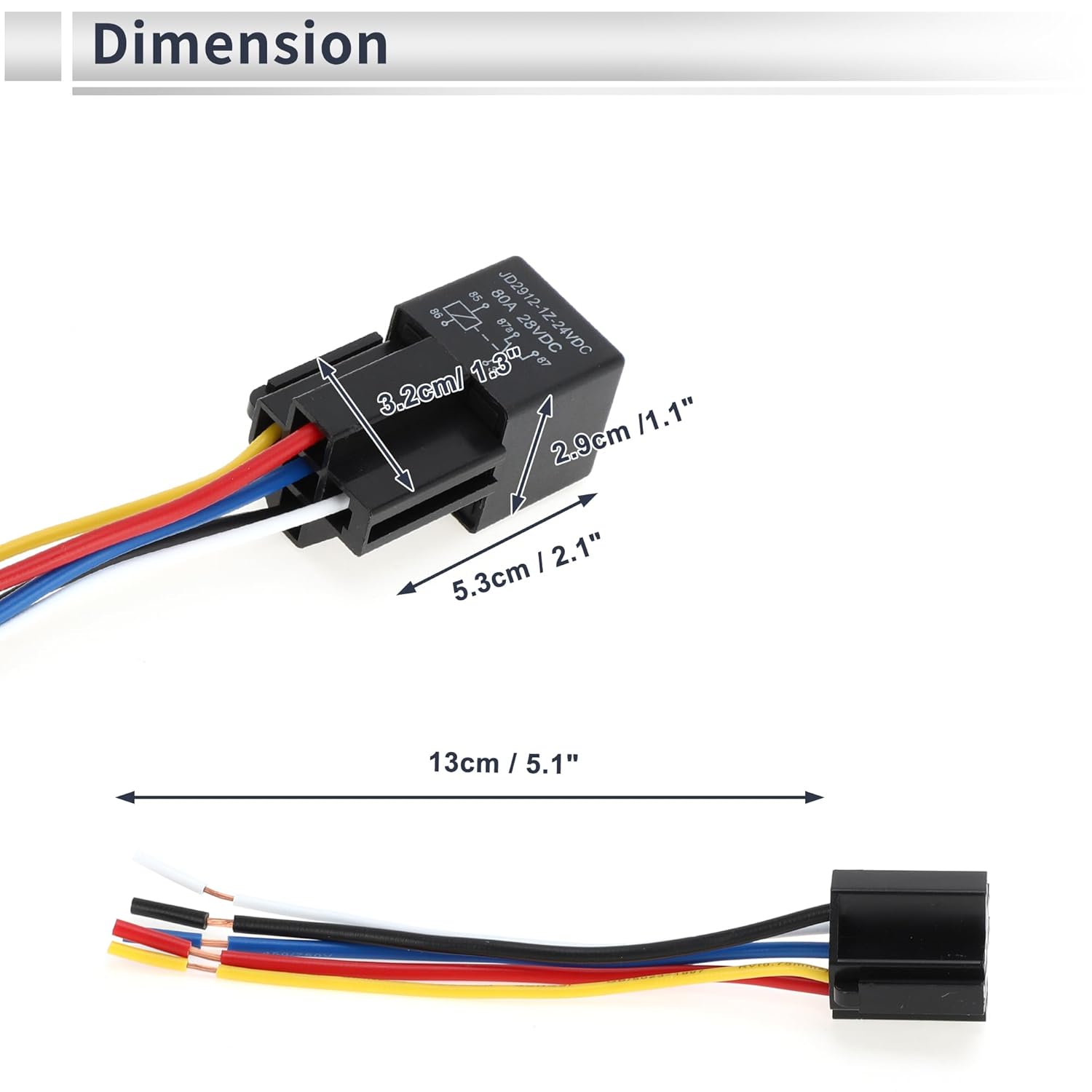 Relé Automotivo 5 Pinos 24V 80A – 2 Peças com Soquetes de Fiação à Prova d’Água – Relé Preto
