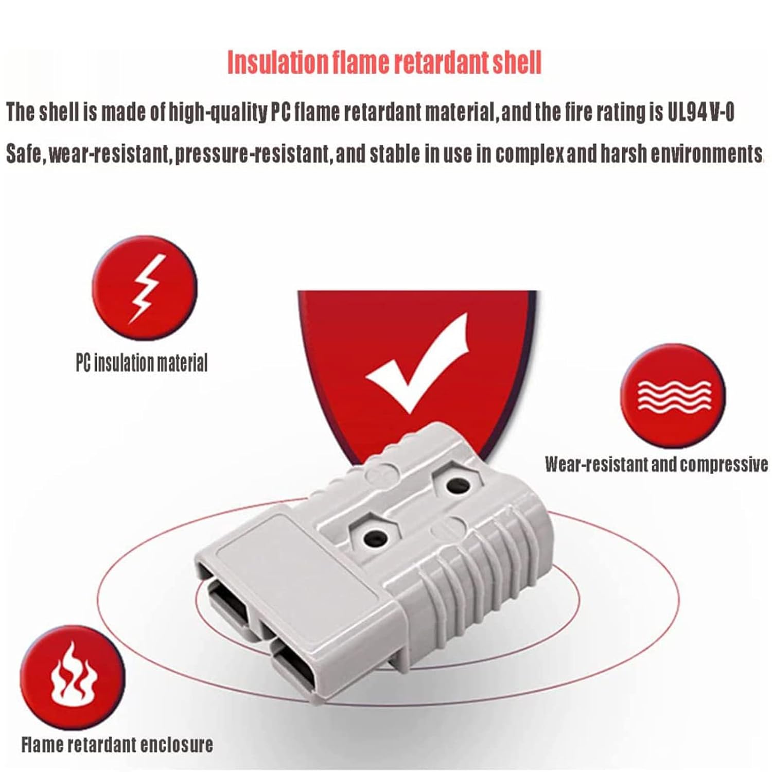 Este conector é projetado para suportar correntes de até 50A e tensões de até 600V, tornando-o adequado para uma ampla gama de aplicações em empilhadeiras elétricas. A construção em materiais resistentes à corrosão e ao desgaste assegura uma longa vida útil, mesmo em condições adversas. O cabo de extensão de 8AWG é ideal para minimizar a perda de energia durante a carga, garantindo que a bateria receba a potência necessária para um desempenho otimizado.