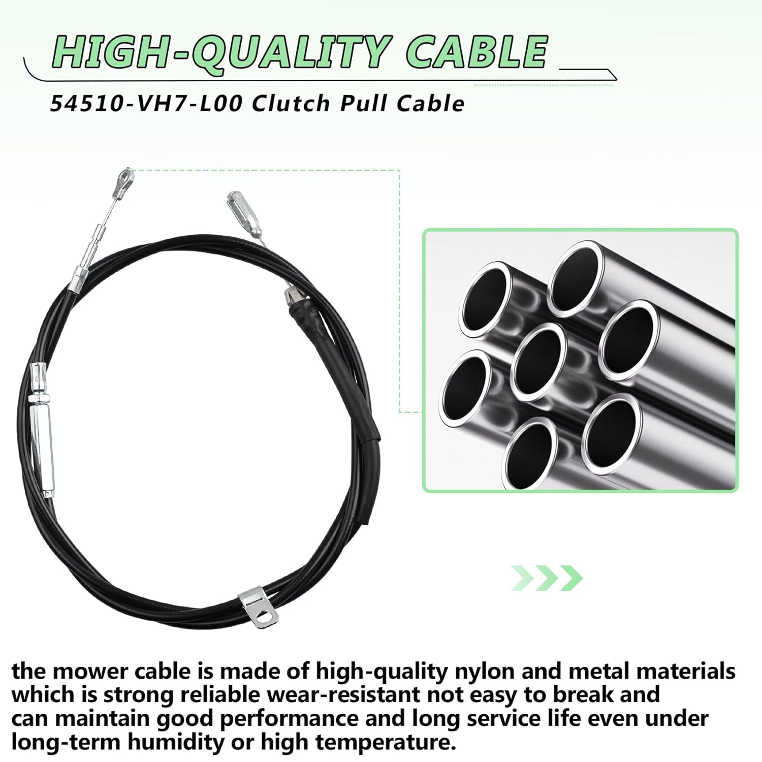 A compatibilidade do cabo 54510-VH7-L00 foi rigorosamente testada, assegurando que ele funcione perfeitamente com os cortadores de grama Honda mencionados. Fabricado com materiais de alta qualidade, como nylon e metal, o cabo oferece resistência à abrasão, corrosão e tração, suportando condições de trabalho complexas e estresses durante o uso prolongado, reduzindo assim a probabilidade de falhas.