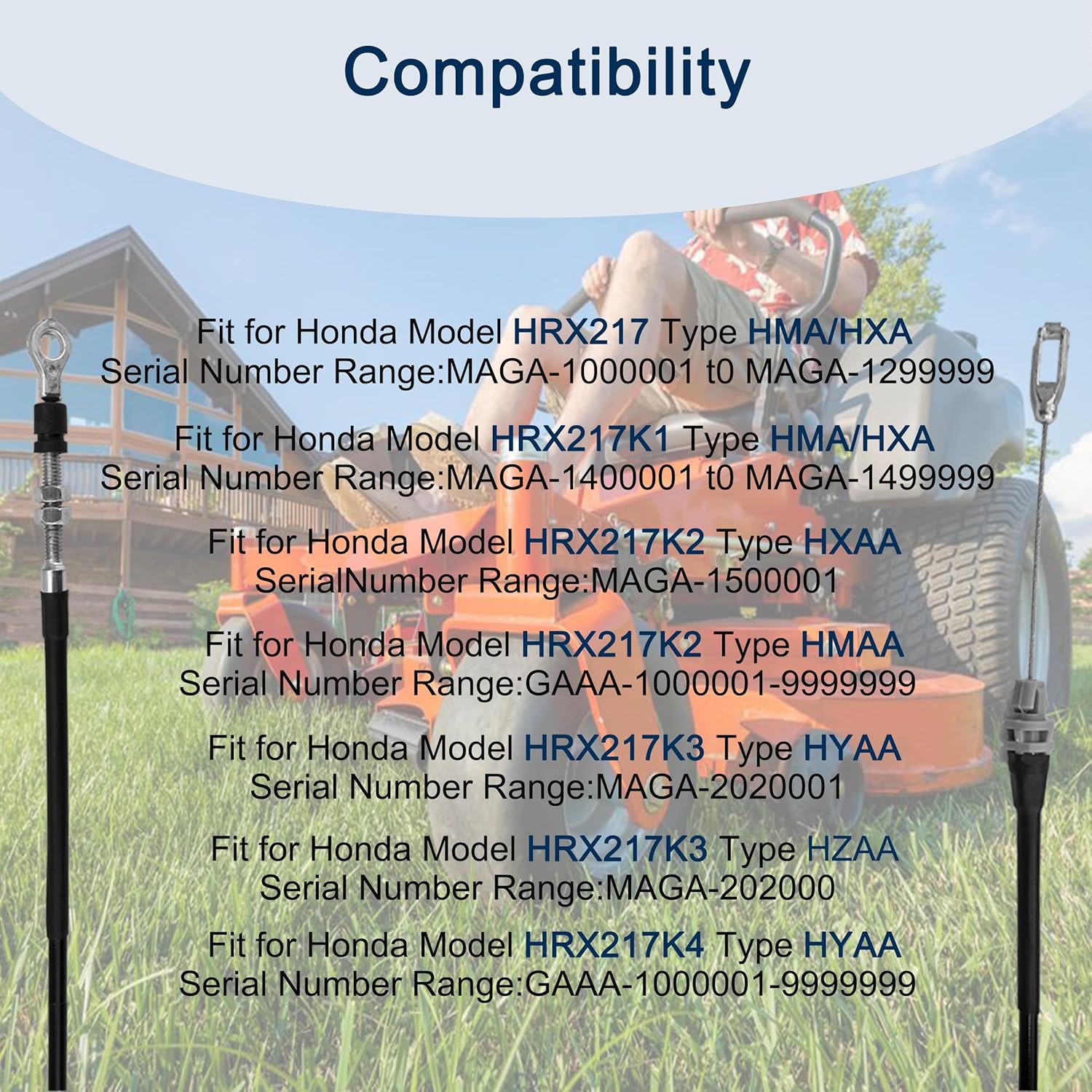 Este cabo é projetado para se encaixar perfeitamente nas séries de cortadores de grama Honda HRX217, HRX217K1, HRX217K2, HRX217K3 e HRX217K4. Fabricado com materiais de altíssima qualidade, o cabo assegura não apenas a qualidade do produto, mas também uma maior durabilidade e uma vida útil prolongada das peças. Isso significa que você pode contar com um desempenho consistente e confiável, mesmo após longos períodos de uso.