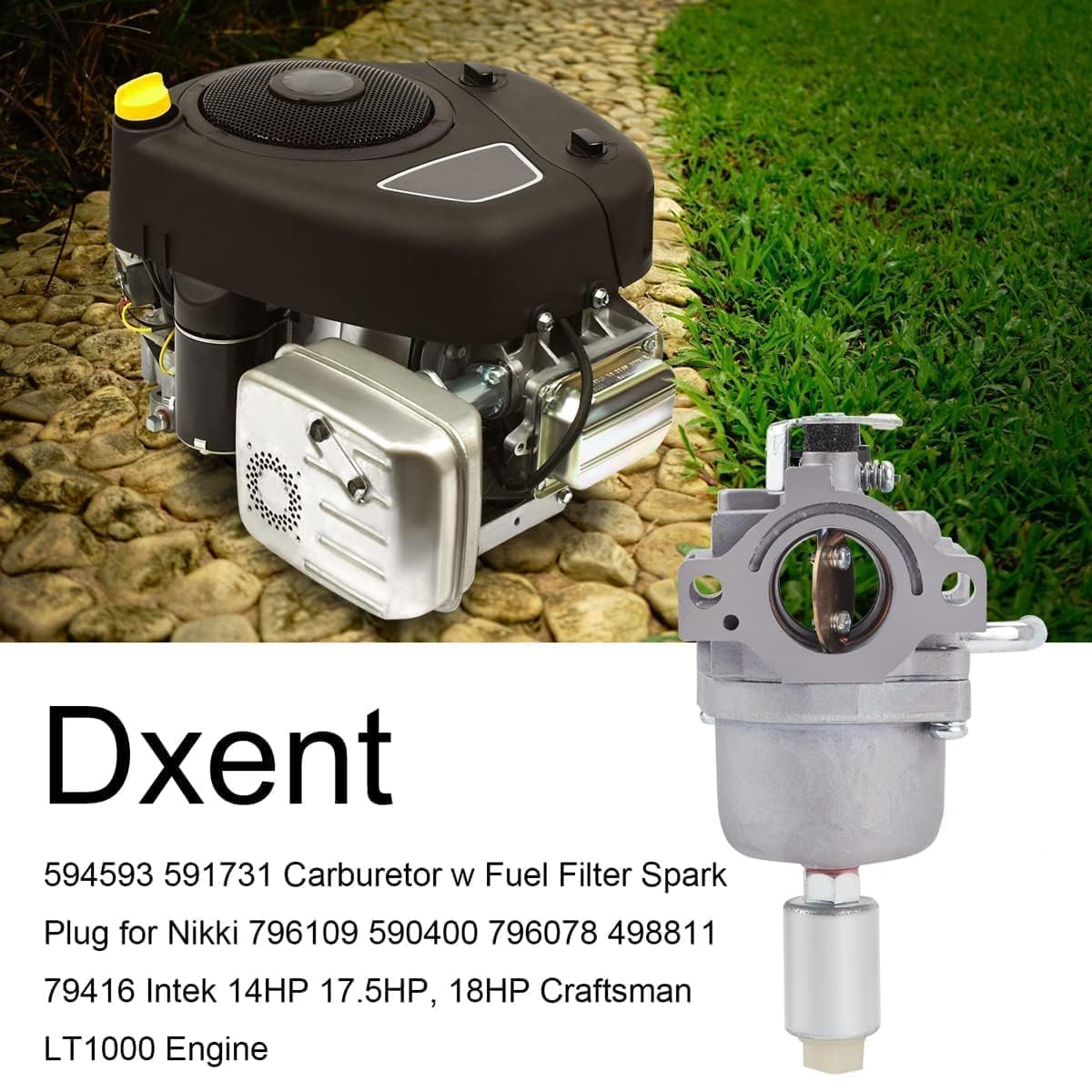 This carburetor is a perfect match or better than that found on the Briggs & Stratton 18 hp Intek engine. It was easy to install with wrench and socket tools. Took only 15 minutes total time to remove old carburetor and install this new model. No adjustments required. This was to replace the old Nikki carburetor on a 14 year old Craftsmen L2000 riding lawn mower. The solenoid on the old carburetor failed and flooded the crankcase and cylinder with fuel, even after it stated and ran. The engine fired up and ran after being installed with one 15 second amount of time cranking the engine. Engine now runs like new with no hesitation and full power capability. Note: I used the replacement spark plug that came with this kit. It is identical to the recommended one called out in owners manual (Champion RC12YC). Also had to perform a new oil/filter change prior to installing the new carburetor due to the fuel mixed into crankcase from the old carburetor failure after 14 years.