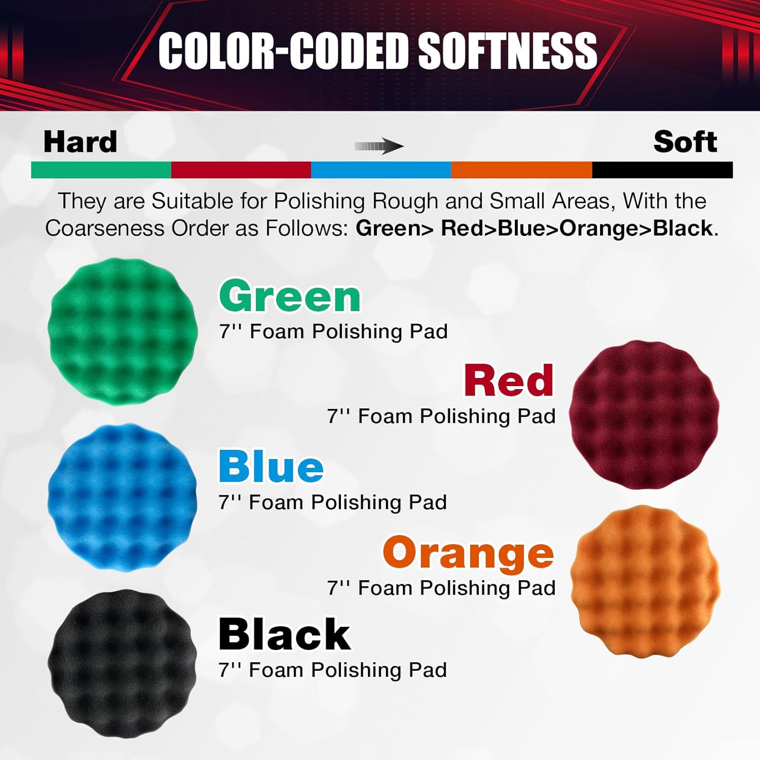 The kit comes with seven different pads, each uniquely suited to handle a range of tasks. There are pads for compounding, polishing, and waxing, making it incredibly versatile. Whether I’m removing oxidation, refining the polish, or applying wax for that final shine, there’s a specific pad that delivers excellent results. I found the cutting pad especially useful for those hard-to-buff areas with surface imperfections.