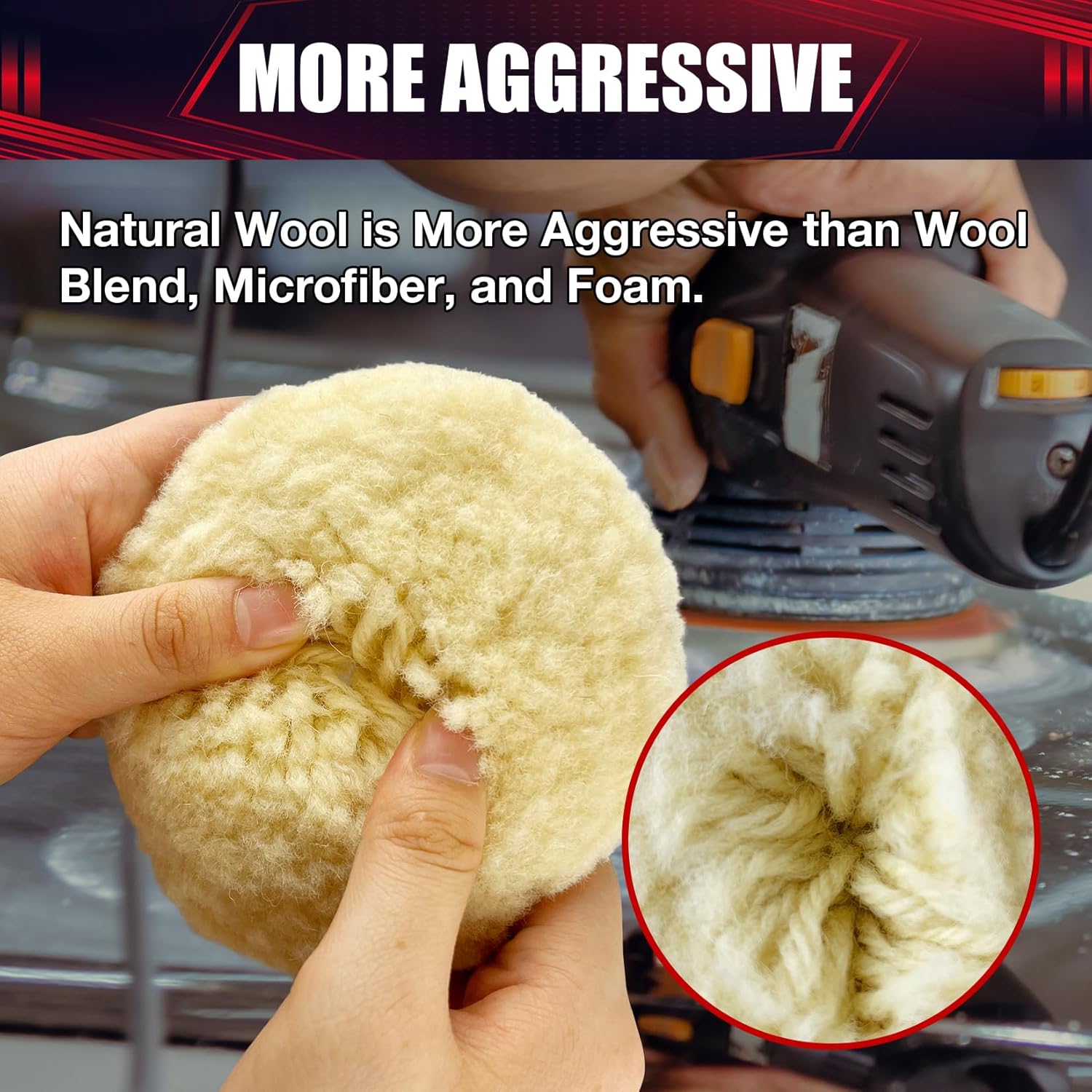 Esses pads de lã são dobráveis, laváveis e reutilizáveis, tornando-os uma opção econômica e sustentável. Eles são especialmente eficazes na remoção de pintura oxidada, marcas de laranja, arranhões profundos e riscos de lixamento. Comparados aos pads de espuma, os pads de lã são um meio mais agressivo para corte, permitindo um trabalho mais rápido e eficiente. É recomendado iniciar o processo de polimento com um pad de lã e finalizar com um pad de espuma para um acabamento perfeito.