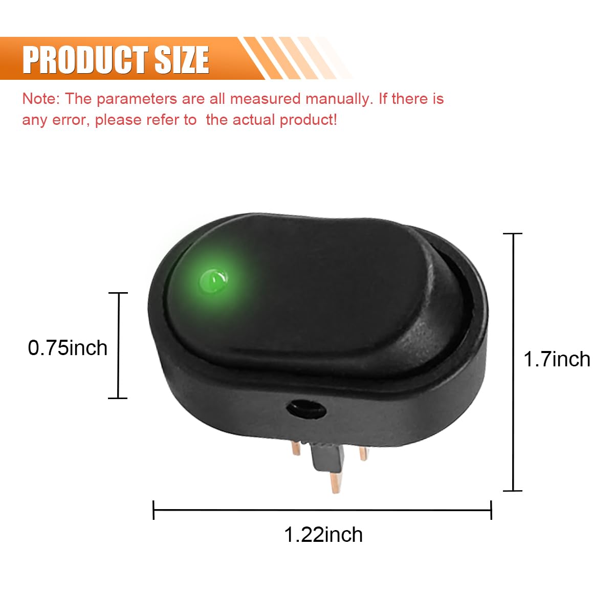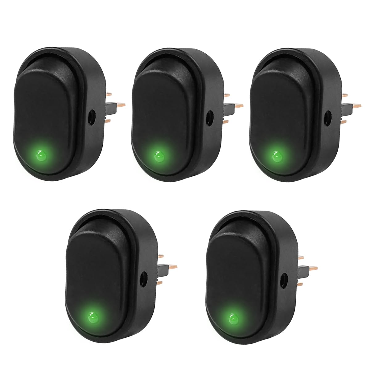O 5PCS LED Lighted Rocker Switch é a solução ideal para quem busca um interruptor de alta qualidade e confiabilidade para aplicações automotivas e marinhas. Com um design oval clássico e disponível em cores de LED como azul, verde, vermelho e amarelo, este interruptor não só é funcional, mas também esteticamente agradável. Com uma tensão de operação de DC 12V e capacidade de corrente de 30A, ele é projetado para suportar uma ampla gama de aplicações, desde controle de luzes LED até sistemas de iluminação em barcos e veículos.