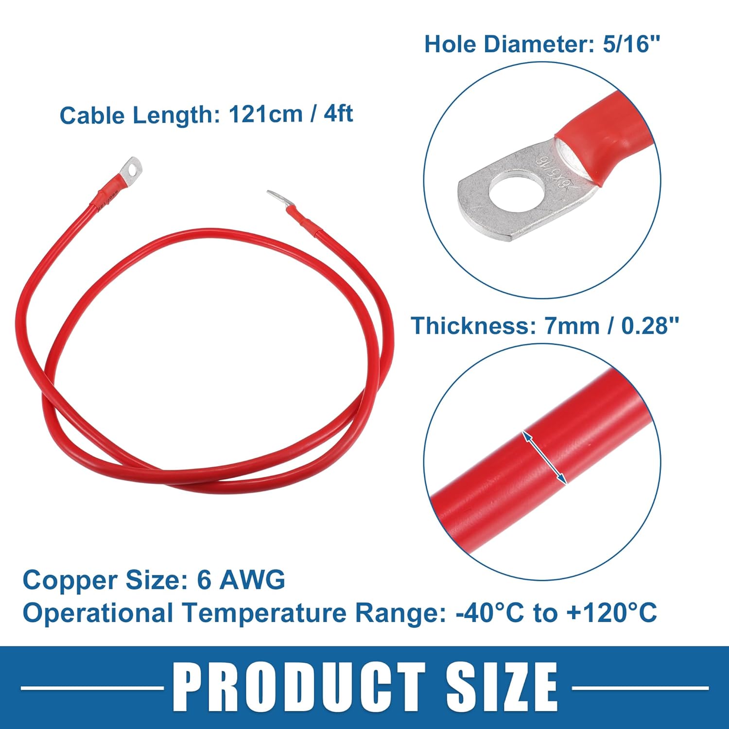 O Cabo de Bateria 6 AWG de 121 cm (4 pés) é a solução ideal para quem busca um desempenho superior em aplicações automotivas e elétricas. Com um design robusto e eficiente, este cabo é universalmente compatível com carros, veículos, RVs, aplicações solares, barcos e muito mais. Os cabos de bateria de cobre duráveis garantem uma condução elétrica otimizada, sendo essenciais para equipamentos elétricos que exigem alta performance. É importante verificar o tamanho adequado para a sua aplicação.