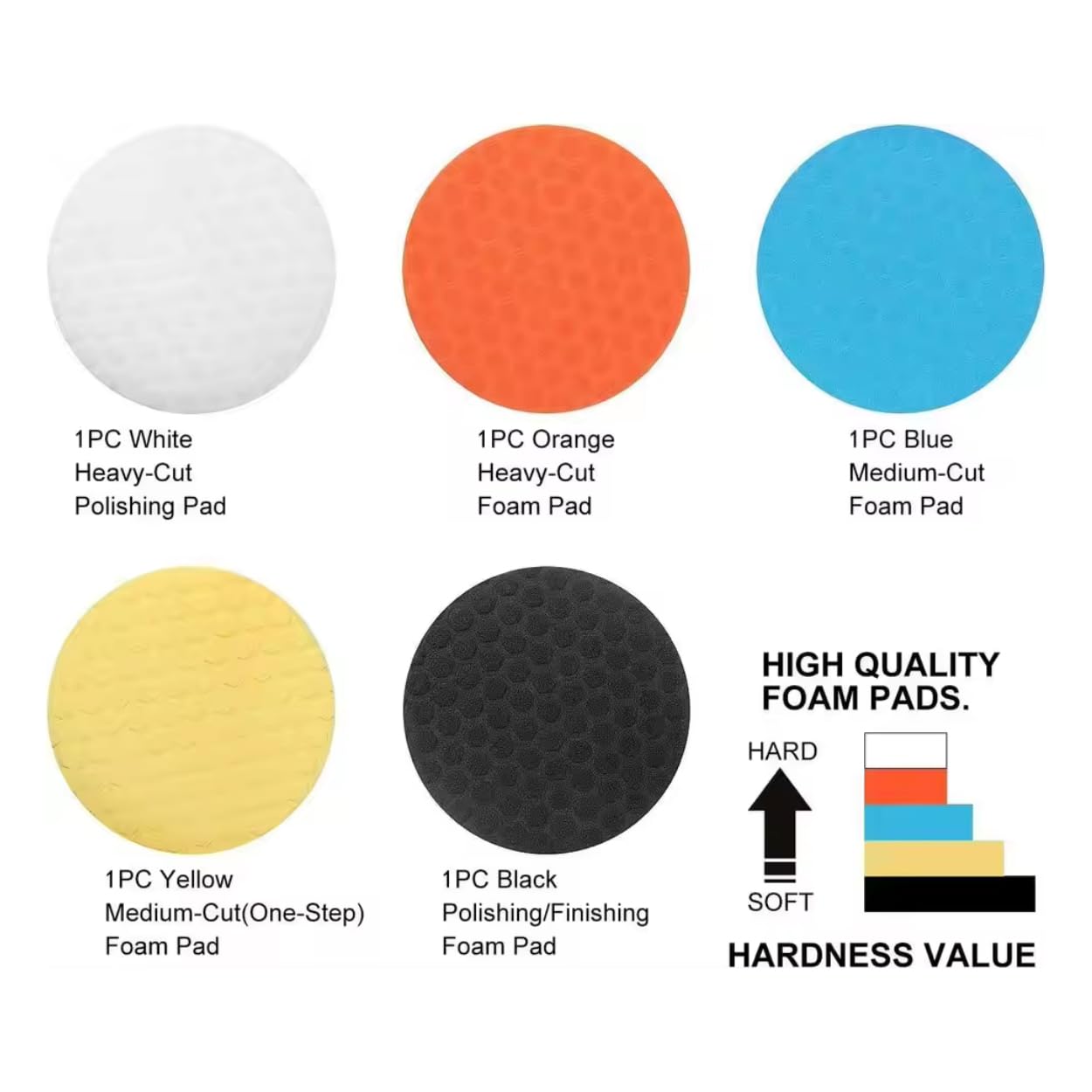 The foam pads are durable and hold up well to heavy use, plus they distribute products evenly, leaving a professional-level shine on the car. I love how easy they are to attach and remove, and they stay securely in place while working. For anyone who enjoys keeping their car looking spotless, this set is perfect for getting that showroom finish right in your own garage.