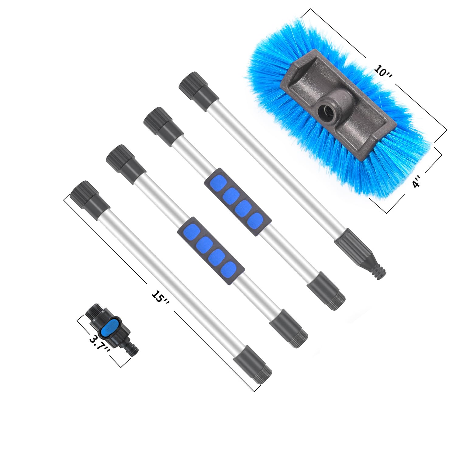 A escova pode ser conectada diretamente à sua mangueira de jardim, permitindo o uso da função de fluxo de água. Você também pode utilizar o interruptor incluído para controlar o fluxo de água, tornando a lavagem e o enxágue do seu veículo muito mais eficientes. Com essa escova, você não precisará mais alternar entre uma escova de limpeza comum e a mangueira.