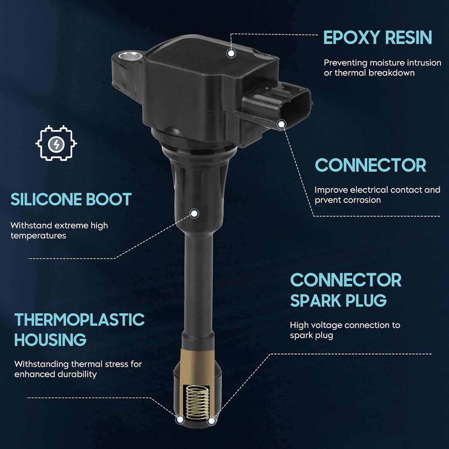 - 🔥 Materiais de Alta Qualidade: As bobinas de ignição Hurotoms são fáceis de instalar e fabricadas com materiais de alta qualidade. Cada bobina é projetada para aplicações específicas, com baixa emissão e alta produção de energia. O composto resistente ao calor garante durabilidade e resistência ao estresse térmico.