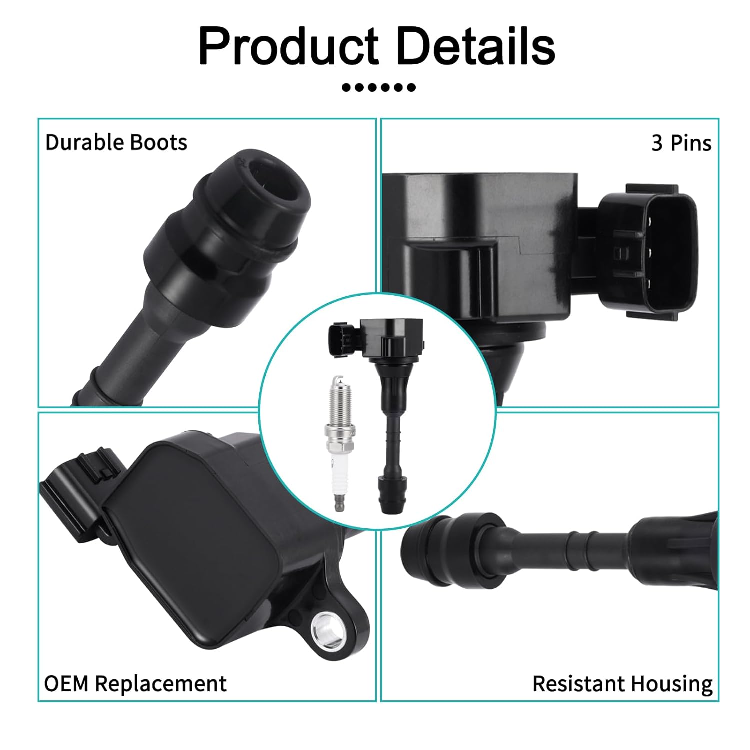 O conjunto de bobinas de ignição UF349 e as velas de ignição 22401-8H515 são componentes cruciais para o funcionamento eficiente de motores de veículos como o Infiniti I35, QX4, Nissan NV1500, NV3500, NV2500 e Suzuki Equator. Com uma construção robusta e tecnologia de ponta, este kit é projetado para proporcionar uma ignição eficiente e confiável, resultando em um aumento significativo na potência e na eficiência do combustível.