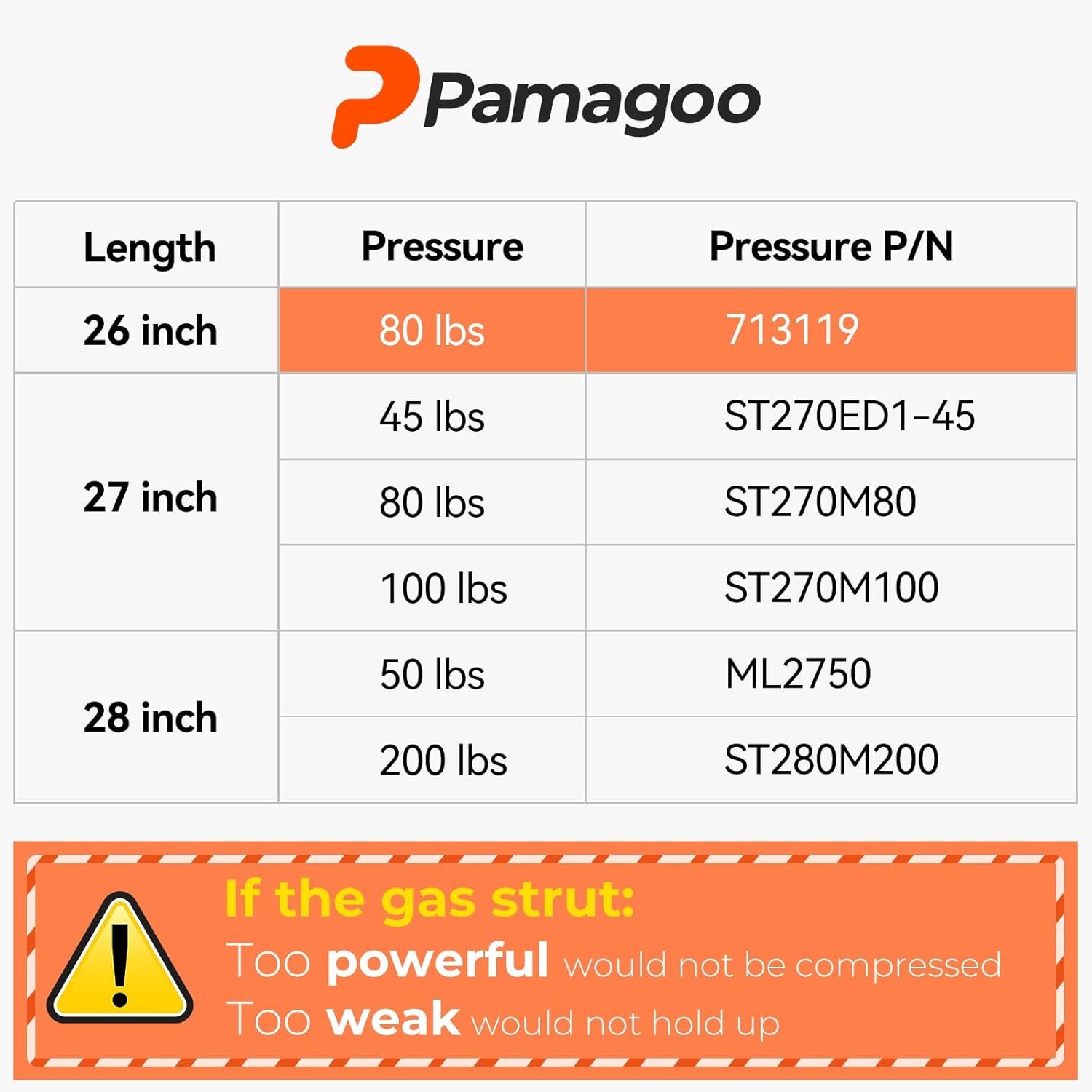 O PAMAGOO 713119 26 inch 80 lbs Gas Struts é a solução ideal para quem busca eficiência e durabilidade em sistemas de abertura e fechamento de coberturas e portas. Com um comprimento estendido de 26,5 polegadas e um comprimento comprimido de 15,40 polegadas, cada strut suporta até 80 lbs, tornando-se perfeito para aplicações que variam entre 65 e 88 lbs. Este pacote contém dois struts, garantindo que você tenha tudo o que precisa para uma instalação completa.