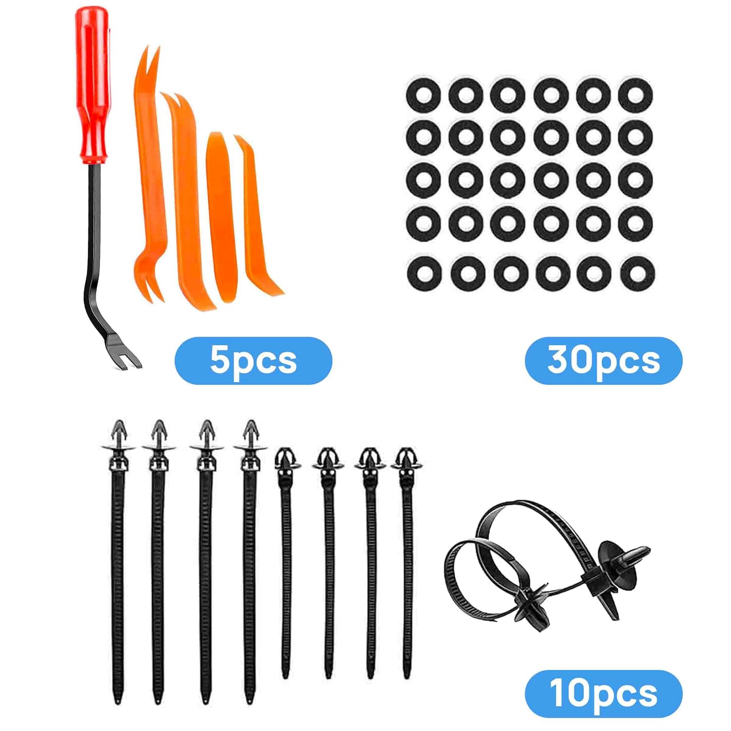 Este kit de clips de retenção é versátil e atende a quase todas as situações. Ele cobre uma ampla gama de veículos, incluindo Ford, GM, Chrysler, Toyota, Nissan, Mazda, Jeep, e muitos outros modelos, como o 2001 MR2 Spyder, 06 350z, e 1996 Ford F-250. Se os tamanhos e formatos atenderem às suas necessidades, este kit será uma adição valiosa à sua caixa de ferramentas.