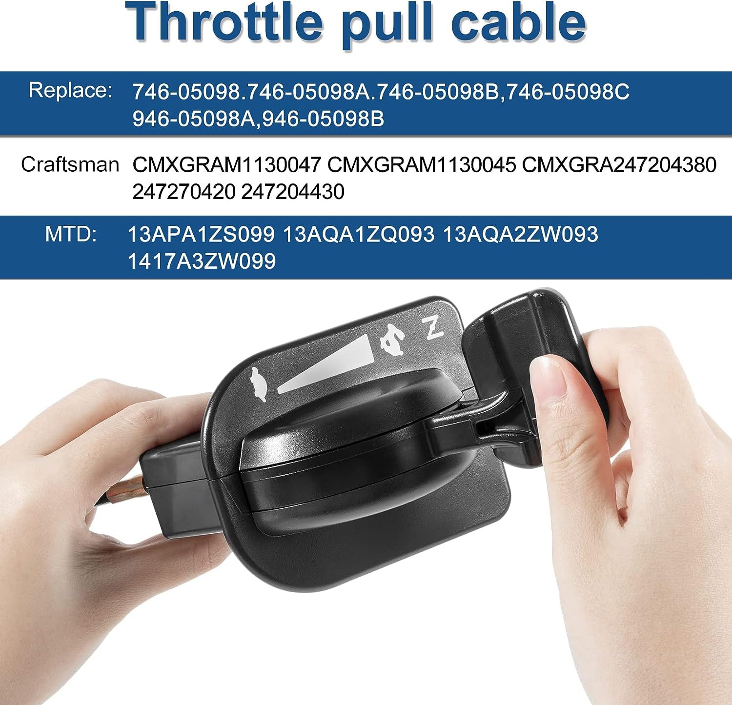 Compatibilidade: O cabo de acelerador/choke 746P06431 é compatível com os modelos CUB CADET Enduro XT1-LT46, XT1-GT50, XT1-LT50 FAB, XT1-GT54 FAB, XT1-ST54 FAB, XT2-GX50 FAB, XT2-GX54 FAB e XT2-SLX54 FAB. Isso significa que, independentemente do modelo que você possui, este cabo é a escolha certa para restaurar a performance do seu equipamento.