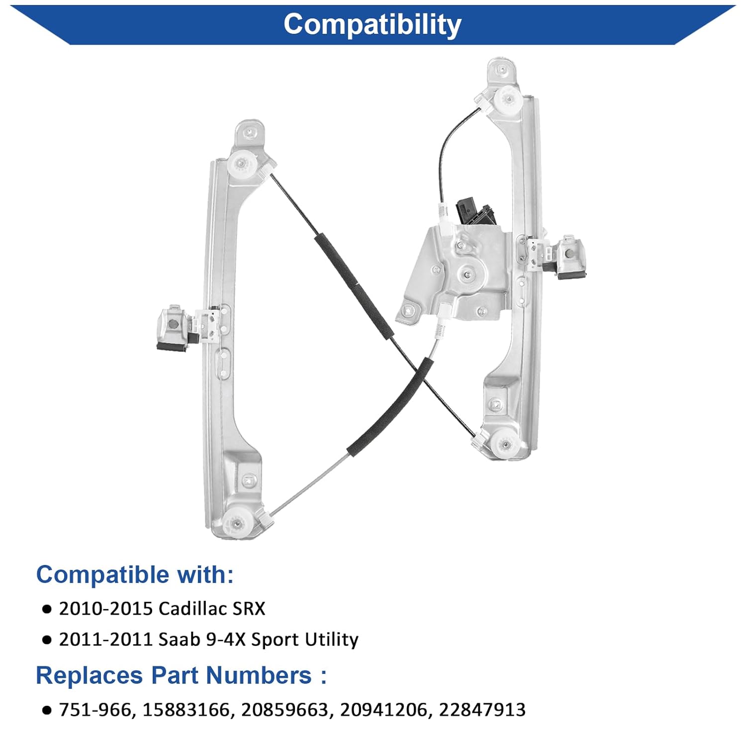 - ✈ Compatibilidade: Nosso regulador de janela e motor é compatível com Cadillac SRX 2010-2015 e Saab 9-4X 2011 Sport Utility.