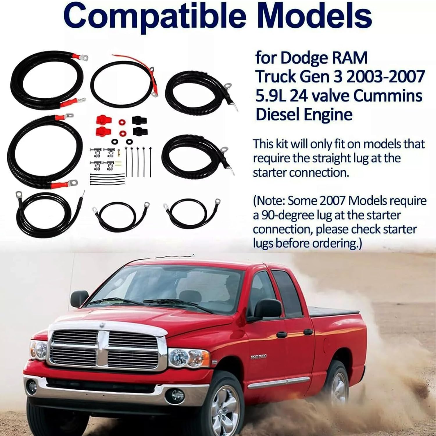 Descrição do Produto: Kit de Substituição de Cabos de Bateria 790 Compatível com Dodge RAM Truck Gen 3 (2003-2007) com Motor Diesel Cummins 5.9L