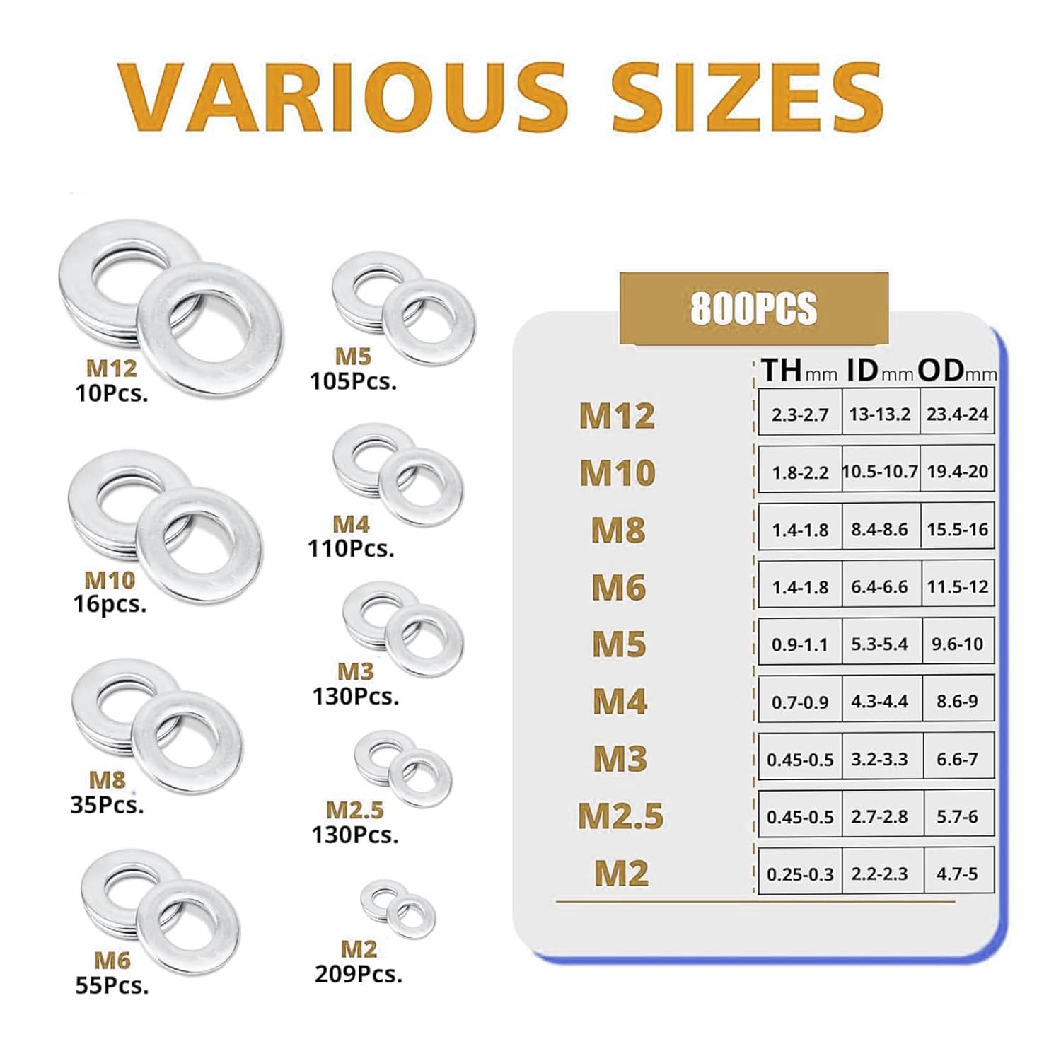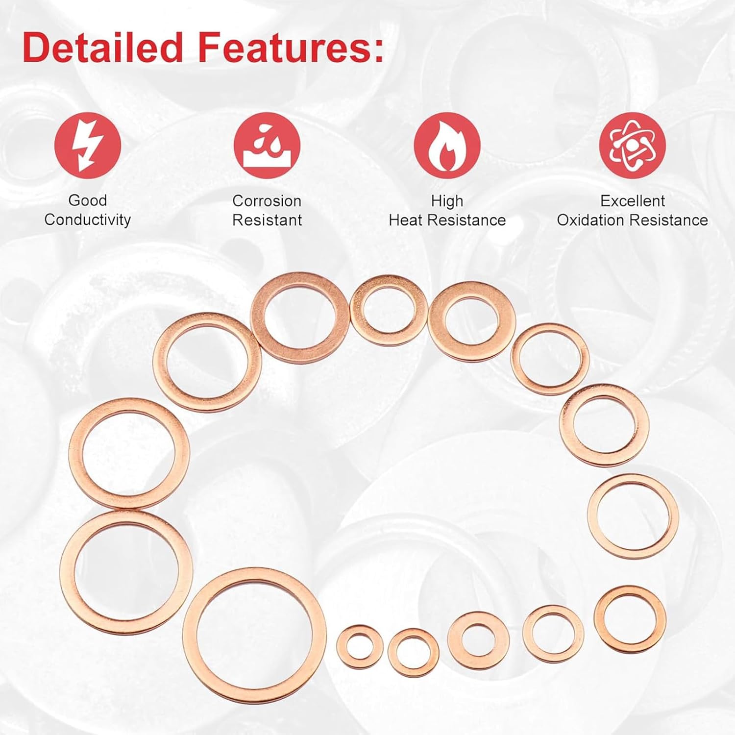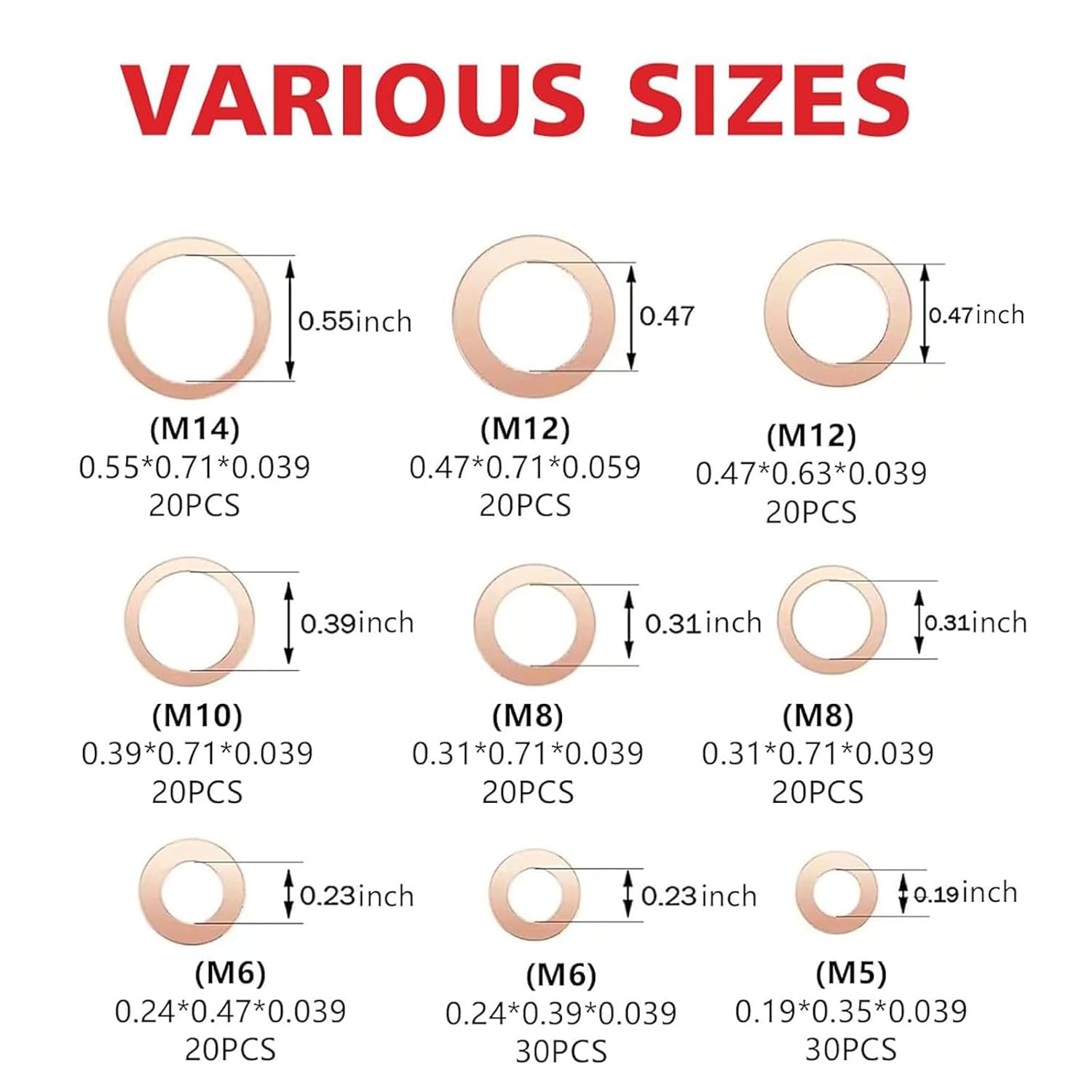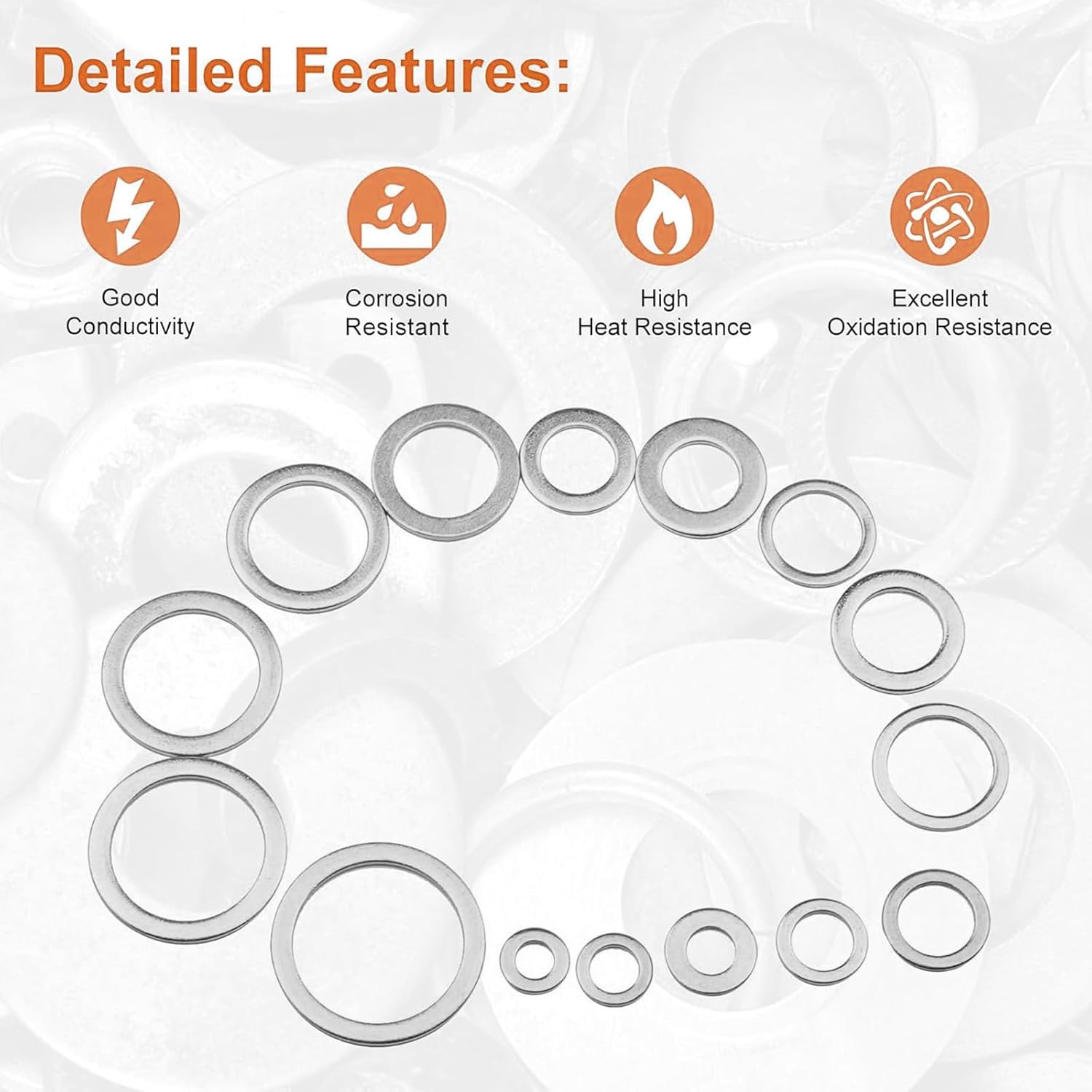 - Informações do Produto: Você receberá um conjunto abrangente de 200 juntas em nove tamanhos: M2, M2.5, M3, M4, M5, M6, M8, M10 e M12. Estas são as juntas mais frequentemente utilizadas em cenários do dia a dia, oferecendo uma gama versátil para atender a todas as suas necessidades. Este sortimento economiza o trabalho de procurar em lojas de peças automotivas.
