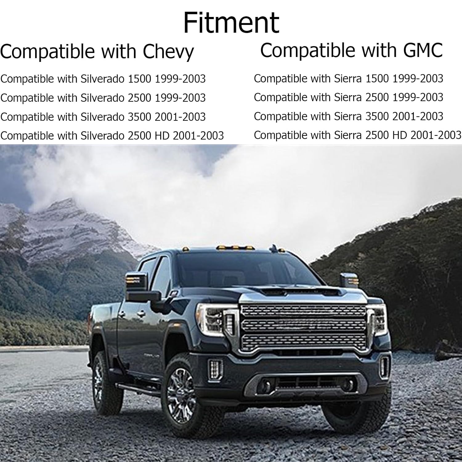 Compatibilidade Extensa: Este kit é projetado para se encaixar perfeitamente nos modelos Chevrolet Silverado 1500, 2500 e 3500 de 1999 a 2003, além dos modelos GMC Sierra 1500, 2500 e 3500 do mesmo período. A verificação da compatibilidade é essencial para assegurar um ajuste adequado e funcional.