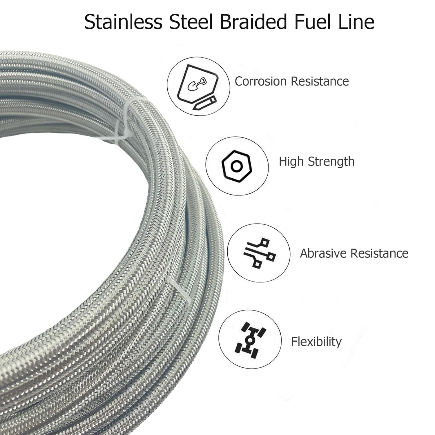 Material Resistente a Altas Temperaturas: Fabricado em aço inoxidável trançado, o kit é projetado para suportar altas temperaturas e resistir ao desgaste e corrosão. Sua superfície lisa não só facilita o fluxo de combustível, mas também assegura uma operação contínua e sem problemas, mesmo em condições adversas.