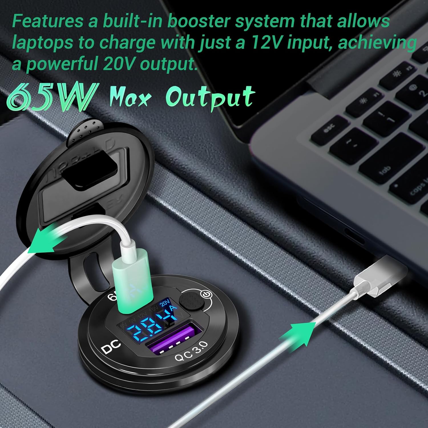 The PD is not rated to 65w as claimed. It will not charge a laptop as the description says and I’ve tried 3 different laptops. I spent $165 getting this installed by an electrician and he tested it and its not even close to the claimed 65w PD. You have misled with the specs with your advertising on amazon and your charger is triple the price of others similar. Despite 3 emails you have still not responded. Avoid this seller and charger at all costs!! I’m absolutely appalled with there misleading claims and lack of customer service!
