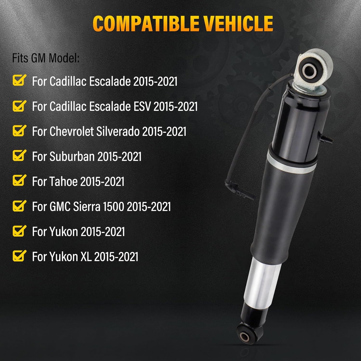 - Modelo Aplicável: Compatível com Cadillac Escalade ESV, GMC Yukon XL, Chevrolet Suburban e Tahoe de 2015 a 2021. Se você não tem certeza se este amortecedor é compatível com seu veículo, informe-nos o VIN do seu carro.
