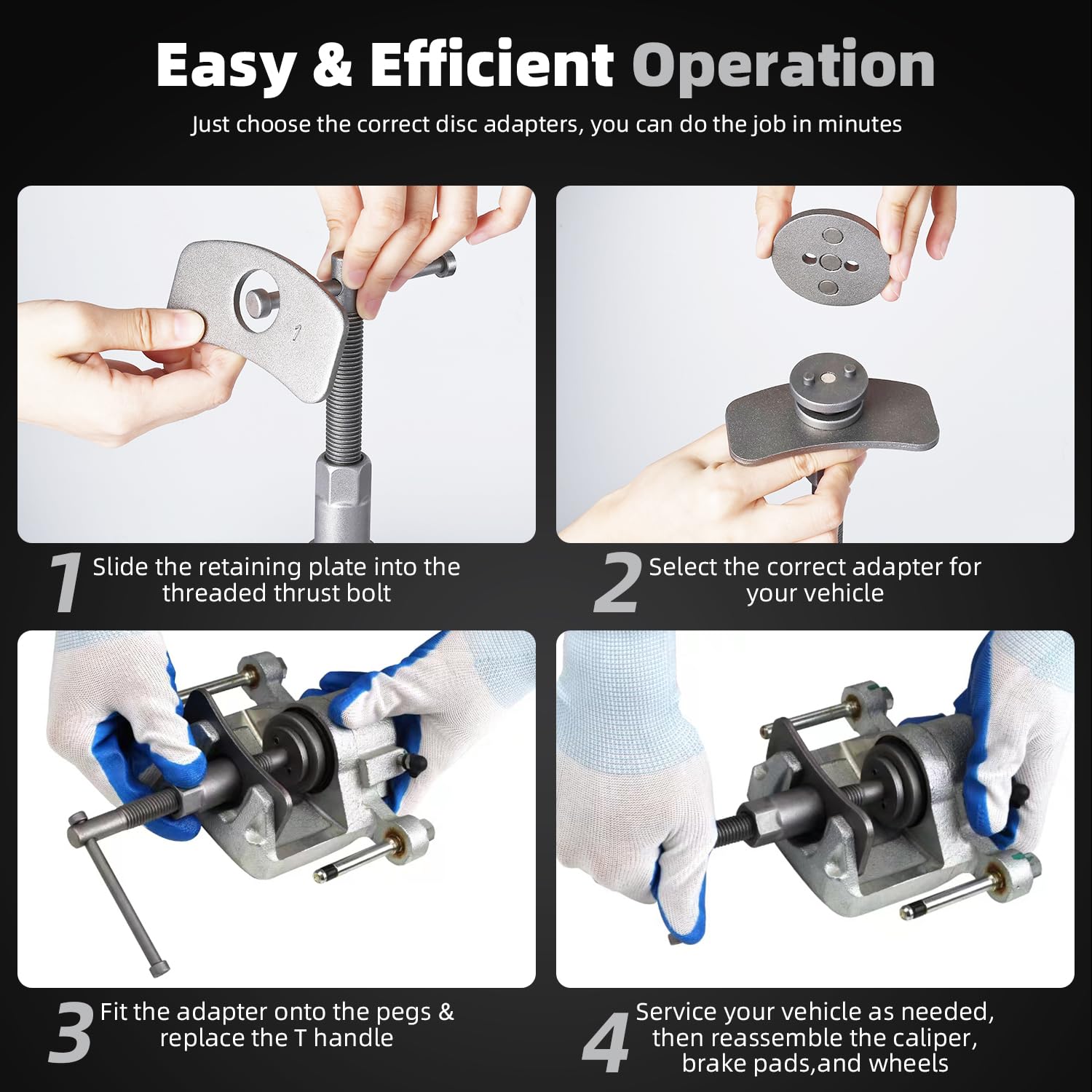 Works great. Good quality and it certainly made installation of my brake pads easier. It’s relatively inexpensive and I would recommend purchasing this complete set versus one of the universal wind back tools since you can use the wide assortment of attachments on other cars brands. The only issue I had (not related to the tool itself) is that I noticed the piston was grabbing onto the rubber seal as I turned the tool. I was afraid the rubber was going to tear so I had to clean off some of the grime on the seal before continuing.