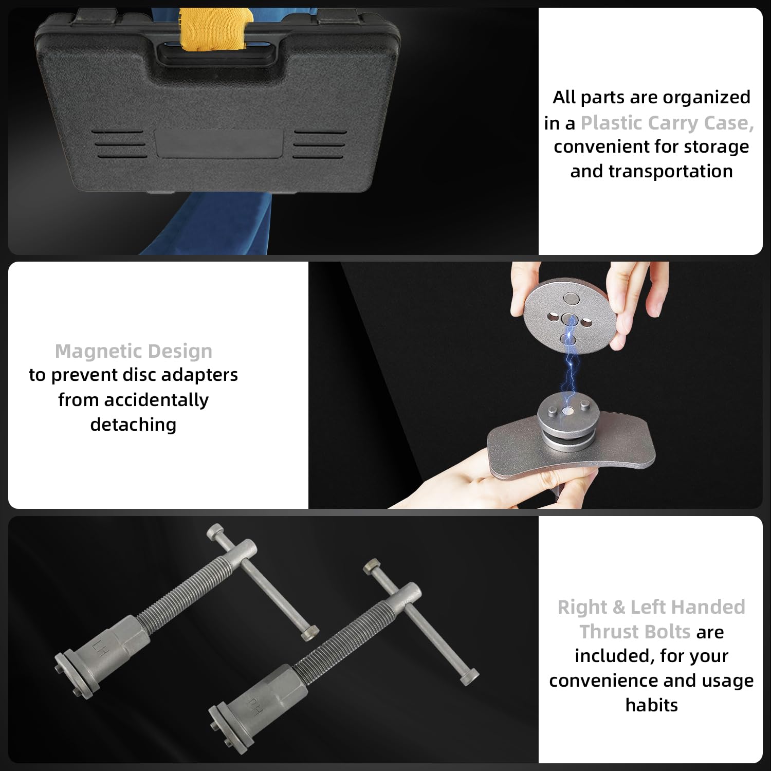Fabricado em material durável, o compressor de pistão de freio é feito de aço de alta resistência, garantindo que não enferruje e mantenha sua eficácia ao longo do tempo. A moldagem de alta precisão assegura que as peças funcionem de maneira eficaz, sem danificar o pistão de freio. O design magnético do parafuso de empurrar manualmente evita que o adaptador do disco caia durante o uso, proporcionando uma experiência de trabalho mais segura e eficiente.