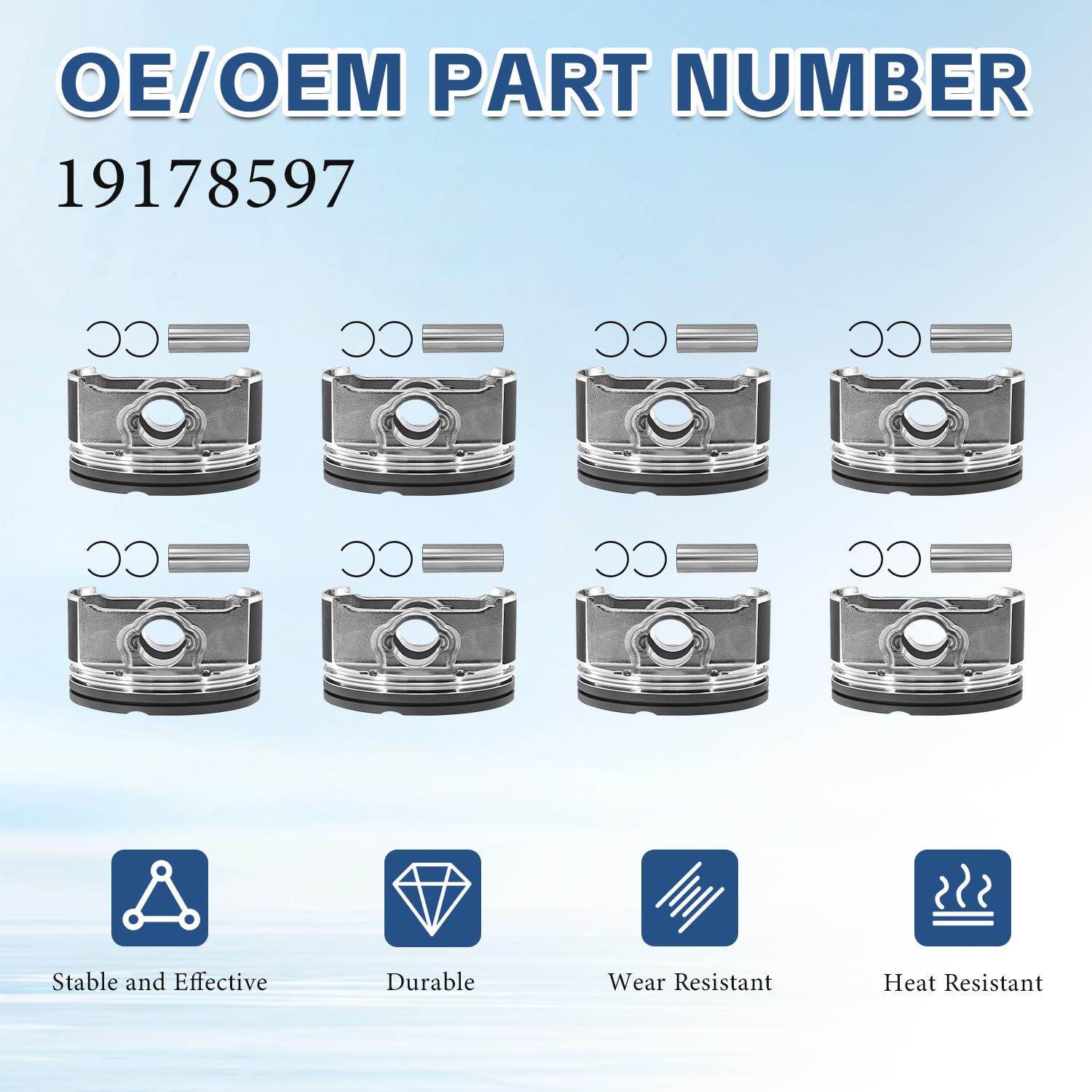 Apresentamos o conjunto de pistões 8Pcs 19178597, projetado especificamente para motores GM 6.2L, incluindo modelos icônicos como Cadillac Escalade, Chevy Silverado 1500, GMC Sierra 1500 e Hummer H2. Este conjunto de pistões é a escolha ideal para quem busca desempenho e confiabilidade em seus veículos. Com o número de peça 19178597, esses pistões são compatíveis com uma variedade de modelos, garantindo que você tenha a peça certa para o seu motor.