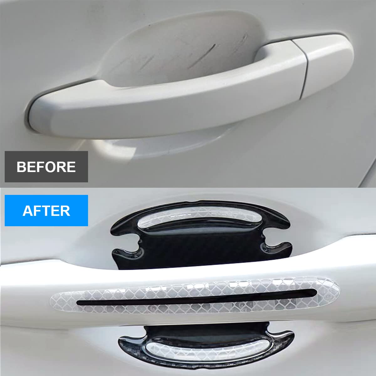 Os Protetores de Copo para Manopla de Carro são a solução ideal para quem busca proteção e estilo para o interior do veículo. Composto por 8 peças, este conjunto de adesivos refletivos em 3D com textura de fibra de carbono é projetado para proteger as áreas vulneráveis das portas do seu carro contra arranhões e danos. A película protetora é especialmente formulada para garantir visibilidade noturna, aumentando a segurança ao entrar e sair do veículo em condições de pouca luz.