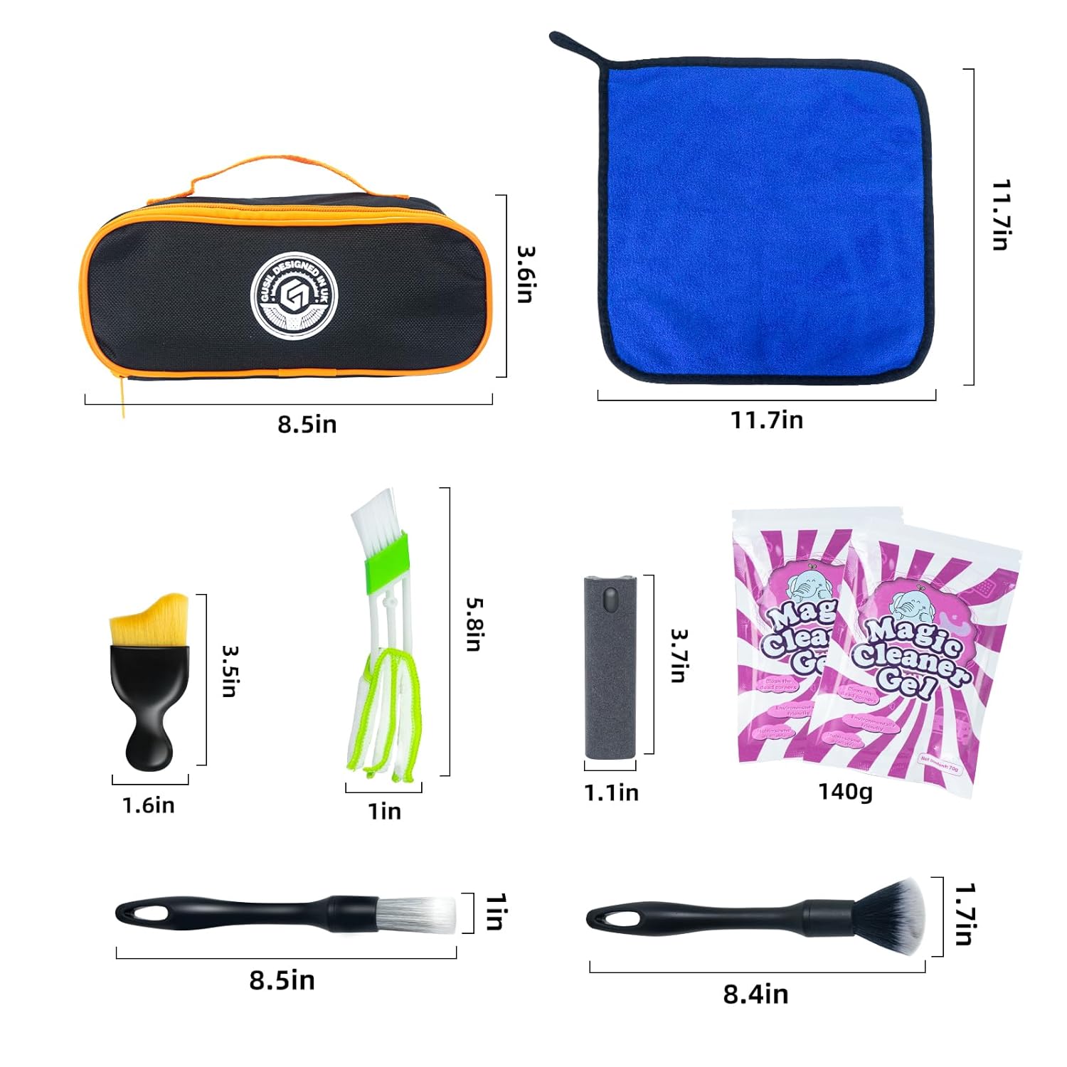 O Kit de Limpeza Interna de Carro 8PCS inclui: