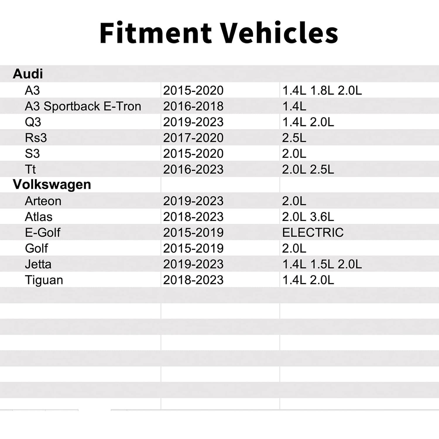- 💙Compatível com Audi 2015-2020 A3 1.4L 1.8L 2.0L | 2016-2018 A3 Sportback E-Tron 1.4L | 2019-2023 Q3 1.4L 2.0L | 2017-2020 RS3 2.5L | 2015-2020 S3 2.0L | 2016-2023 TT 2.0L 2.5L.