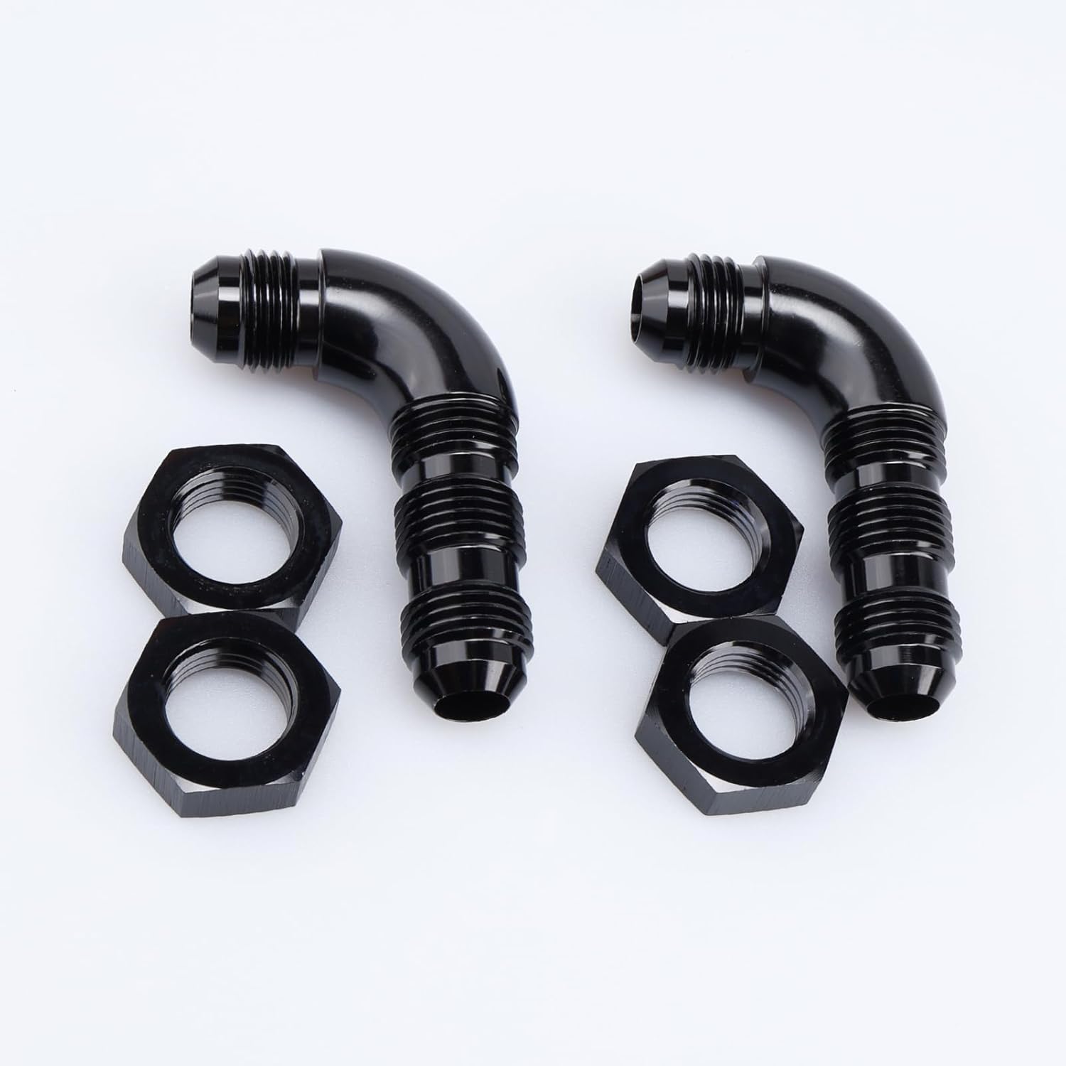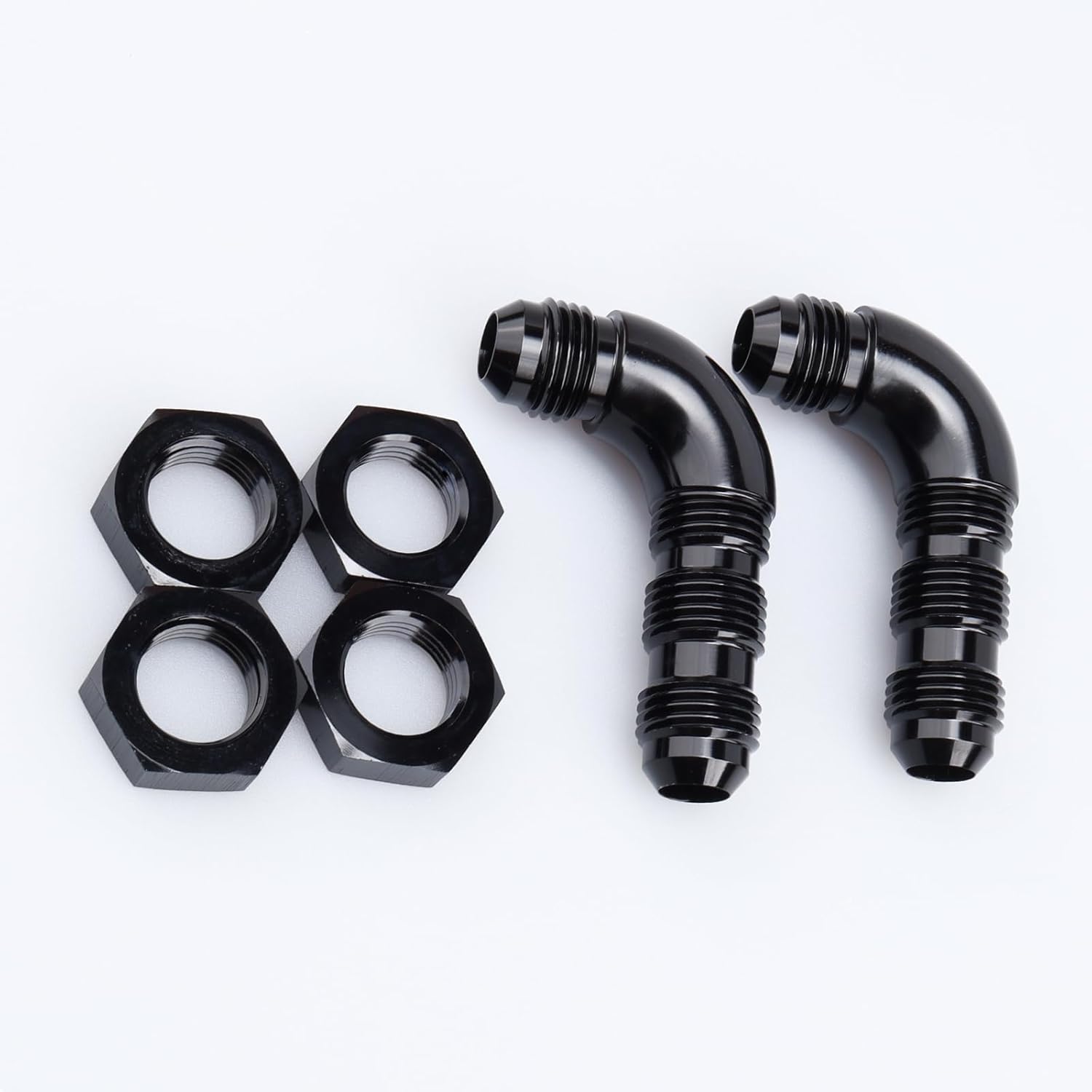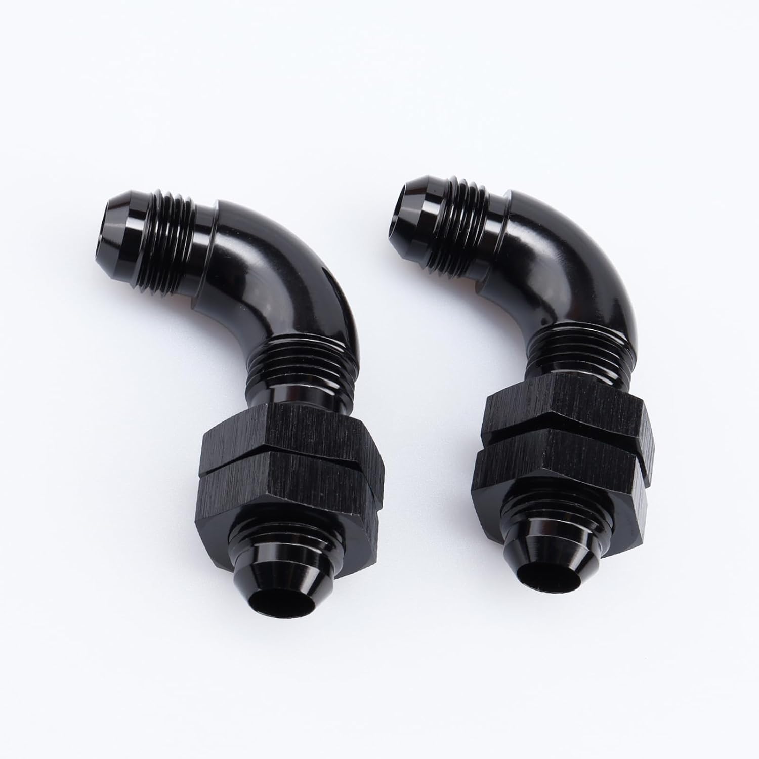 I needed a bulkhead fitting that would clear my fuel pump access cover. Got these installed onto my 2001 Acura Integra fuel pump hanger so that I can complete my E85 fuel system setup. These are true -6 ends with a nice 90 degree bend. The overall anodized black finish is very nice as well. The nice thing about this setup is that you can adjust the top and lower nuts to make the fitting sit higher/lower depending on your needs. Everything was smooth as butter, from the nuts locking into place as well as connecting in the AN hose fittings on opposite ends.