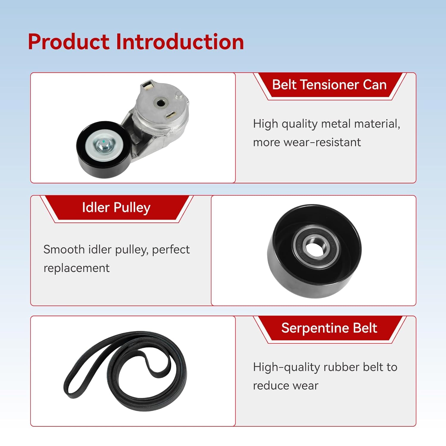 Resposta: O pacote inclui um tensionador da correia, uma polia de idler e uma correia serpentina, todos 100% novos.