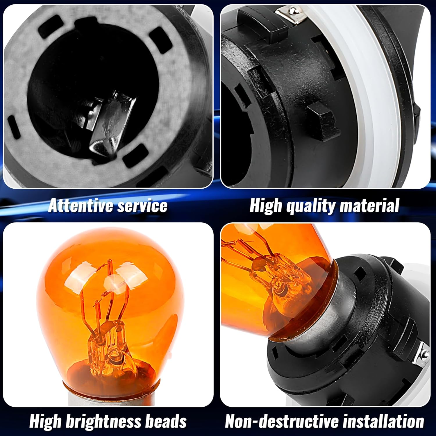 – Solução Completa de Iluminação com Lâmpadas Incluídas: O soquete de lâmpada de sinal de direção frontal vem com lâmpadas de alta qualidade, garantindo uma iluminação intensa e segura. O design inovador previne curtos-circuitos e superaquecimento, proporcionando visibilidade aprimorada e maior segurança nas estradas.