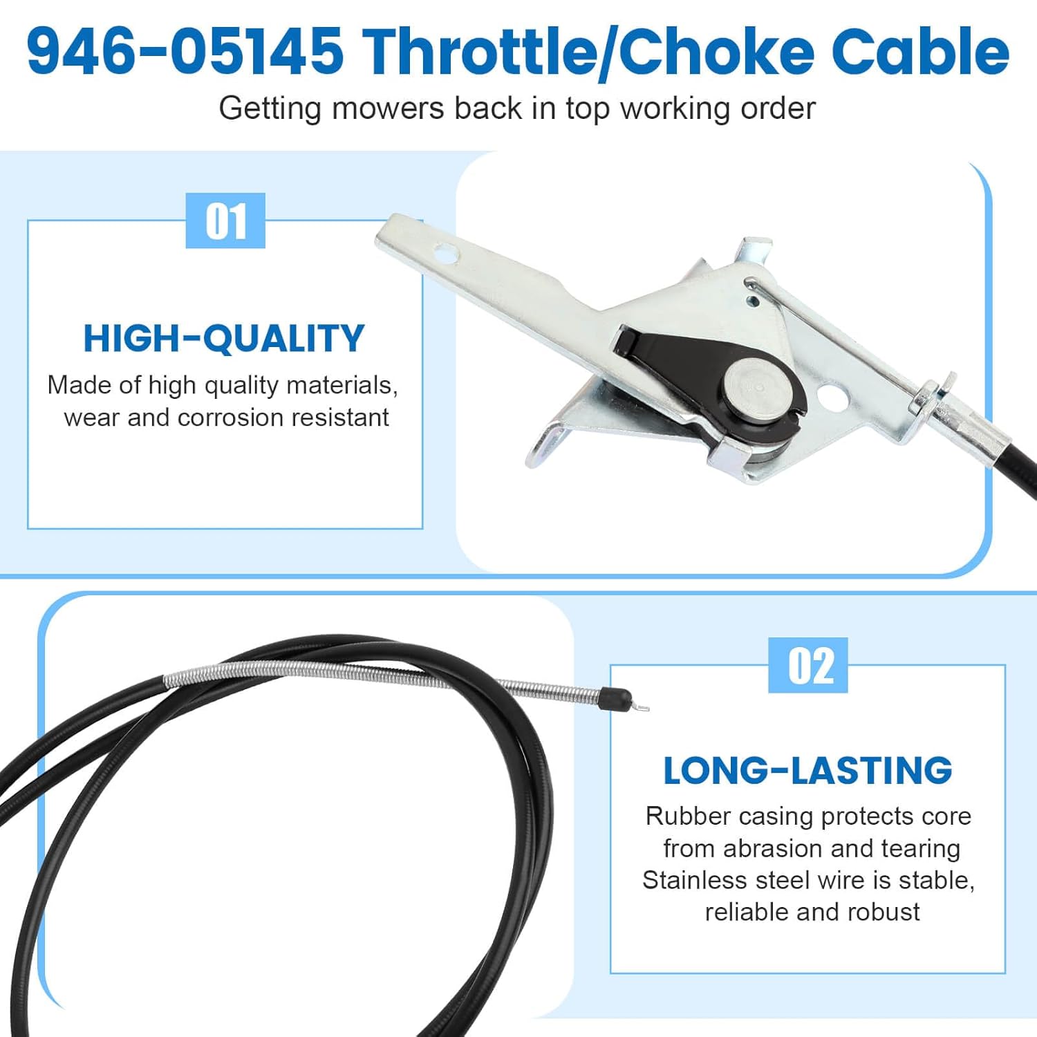 Cabo de Substituição Acelerador/Choke 946-05145 57 polegadas para CUB Cadet RZT-L42, RZT-L46, RZT-L50, RZT-L54, RZT-S42, RZT-S46, RZT-S50, RZT-S54