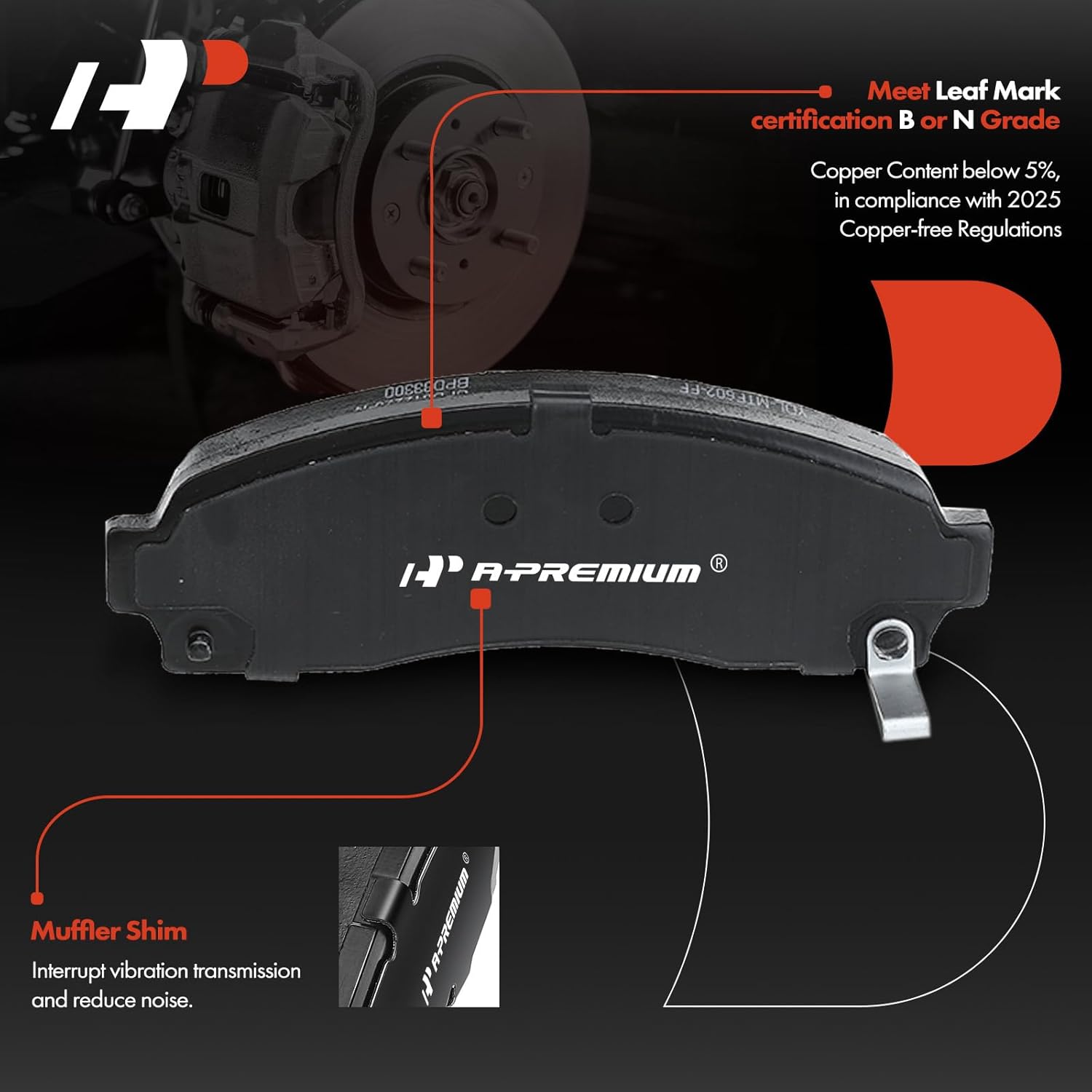 Descrição do Produto: A-Premium 10.28 inch (261mm) Front Vented Disc Brake Rotors Ceramic Pads Kit