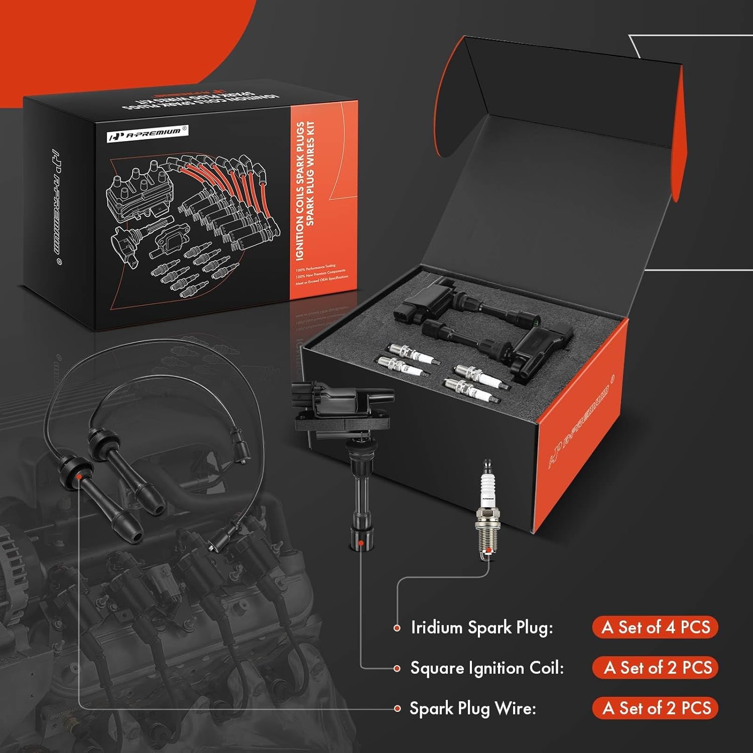 - [Compre com Confiança]: A A-Premium oferece uma garantia de um ano sem limite de quilometragem em nossas bobinas de ignição e kit de velas de ignição meticulosamente elaborados. Oferecemos uma ampla variedade de categorias de acessórios automotivos, garantindo que você possa pegar a estrada com tranquilidade.